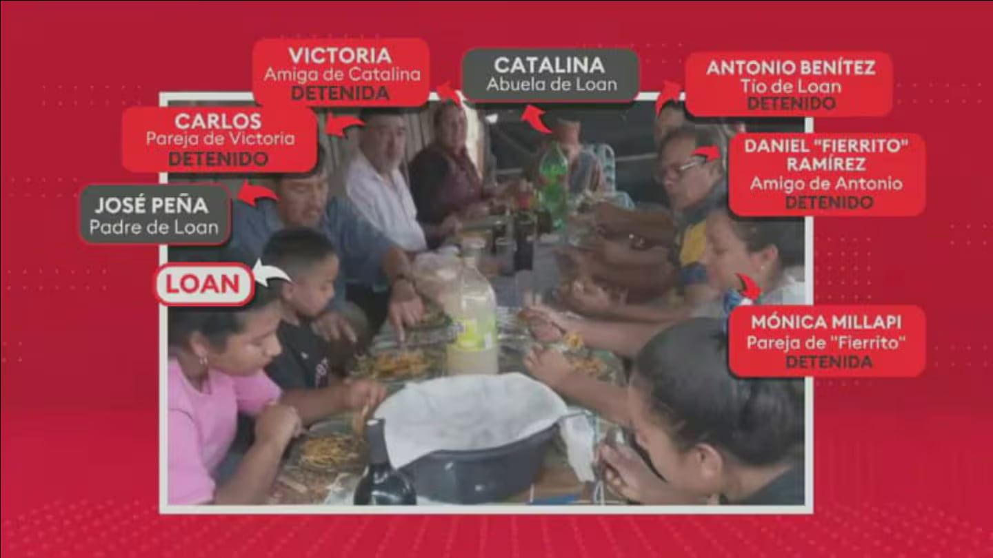 Horas después, detuvieron a los tres adultos (Benítez, Millapi y Ramírez) que llevaron a Loan y a sus primos al naranjal. Al día siguiente, los tres fueron imputados por abandono de persona.
