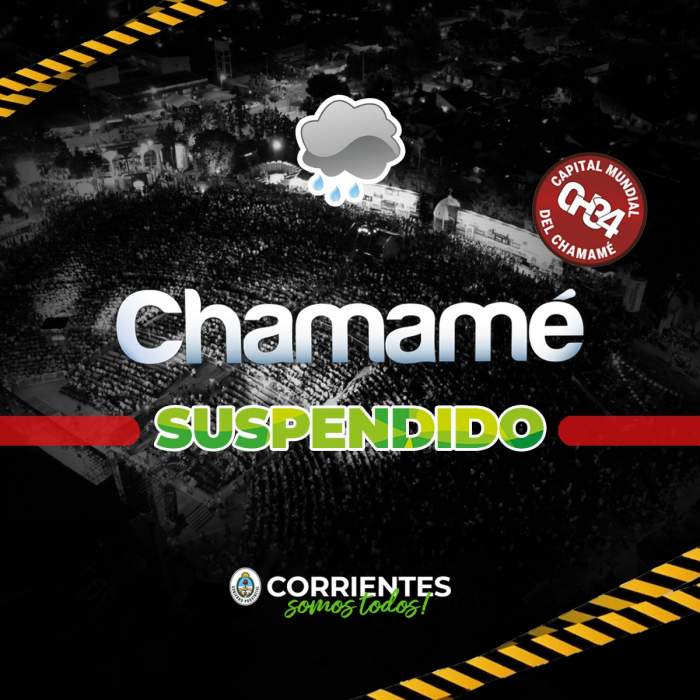 Anoche, poco antes de las 23, el Gobierno de la Provincia de Corrientes confirmó que la séptima noche de la 34ª Fiesta Nacional del Chamamé fue suspendida debido a las lluvias que afectan a la ciudad de Corrientes.