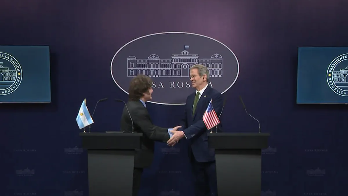 Javier Milei y el secretario del Tesoro de los Estados Unidos, Scott Bessent, realizaron una declaración conjunta en Casa Rosada donde intercambiaron elogios y reforzaron las intenciones de alcanzar un acuerdo comercial entre ambas naciones.