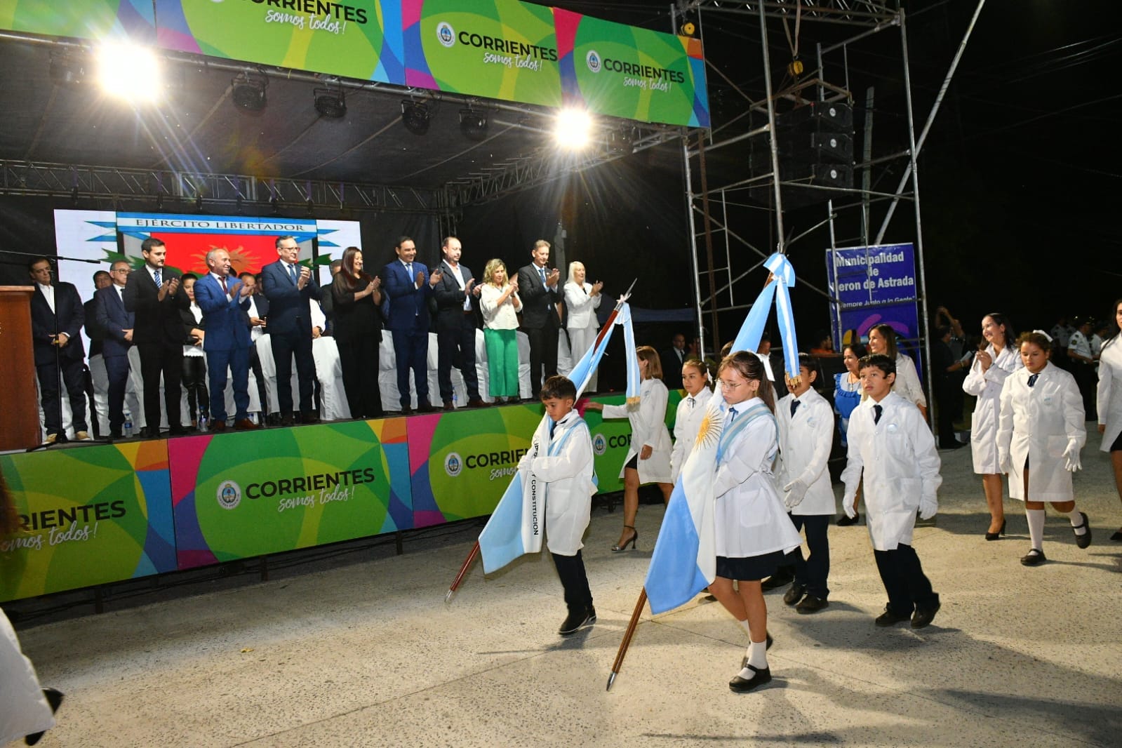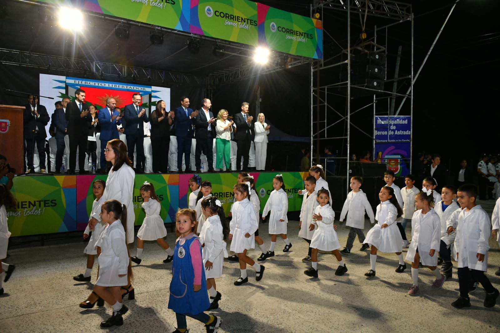 El acto se desarrolló frente a la plaza central donde rindieron honor a Pedro Bernardo Sánchez que fundó este lugar como “San Antonio de Itatí”, el cual fue luego renombrado como Berón de Astrada, histórico gobernador de Corrientes que murió en la batalla de Pago Largo en el año 1839.
