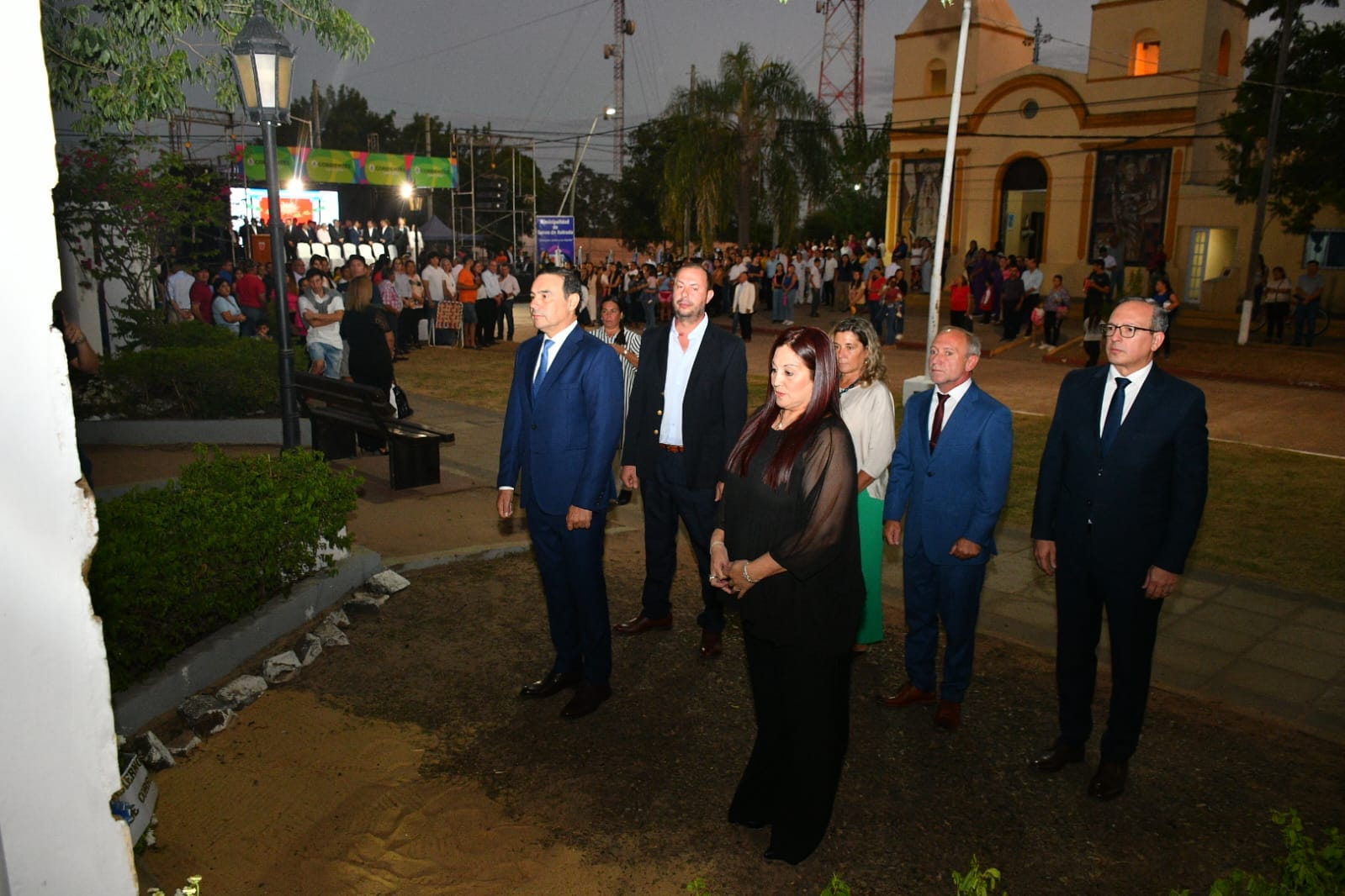 El acto se desarrolló frente a la plaza central donde rindieron honor a Pedro Bernardo Sánchez que fundó este lugar como “San Antonio de Itatí”, el cual fue luego renombrado como Berón de Astrada, histórico gobernador de Corrientes que murió en la batalla de Pago Largo en el año 1839.