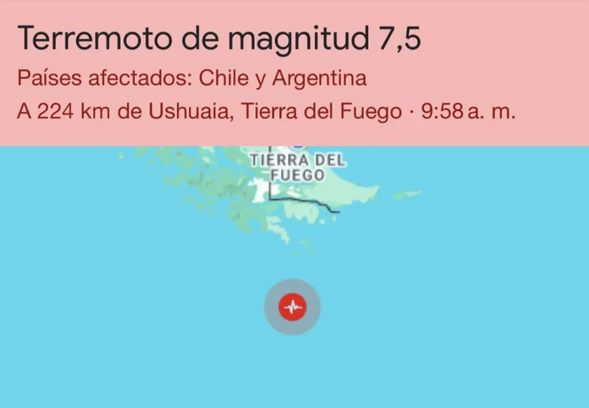 El terremoto fue tan fuerte que también se sintió en el sur argentino, particularmente en Ushuaia, Tolhuin y Río Grande, en la provincia de Tierra del Fuego.
