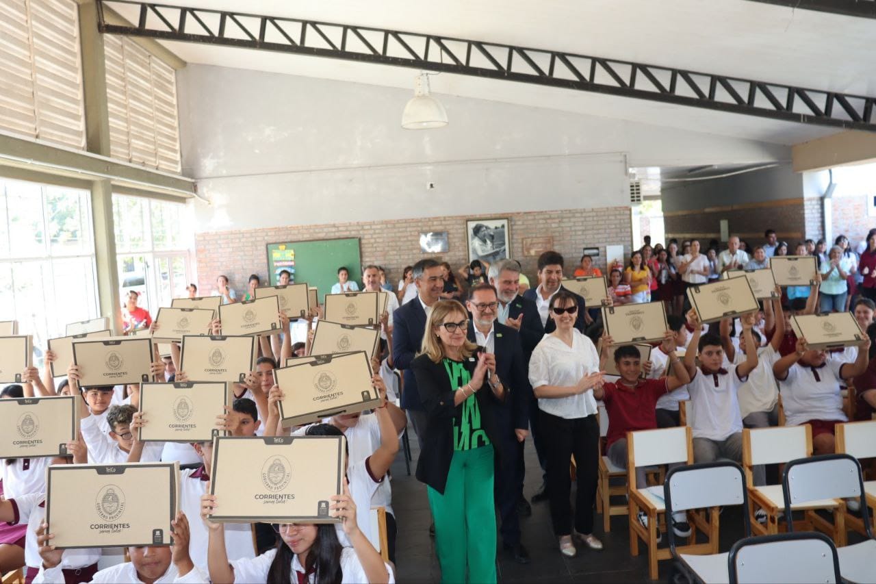 El Gobierno de Corrientes, a través del Ministerio de Educación, entregó equipos del programa Incluir Futuro a estudiantes de la localidad de Villa Olivari; en un acto que tuvo lugar ayer en el Colegio Secundario Doña María Aidé Galarza y fue encabezado por la ministra de Educación, Práxedes López, y miembros de su gabinete.