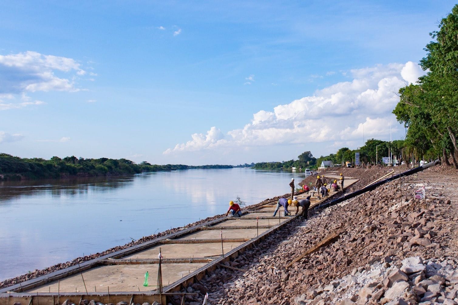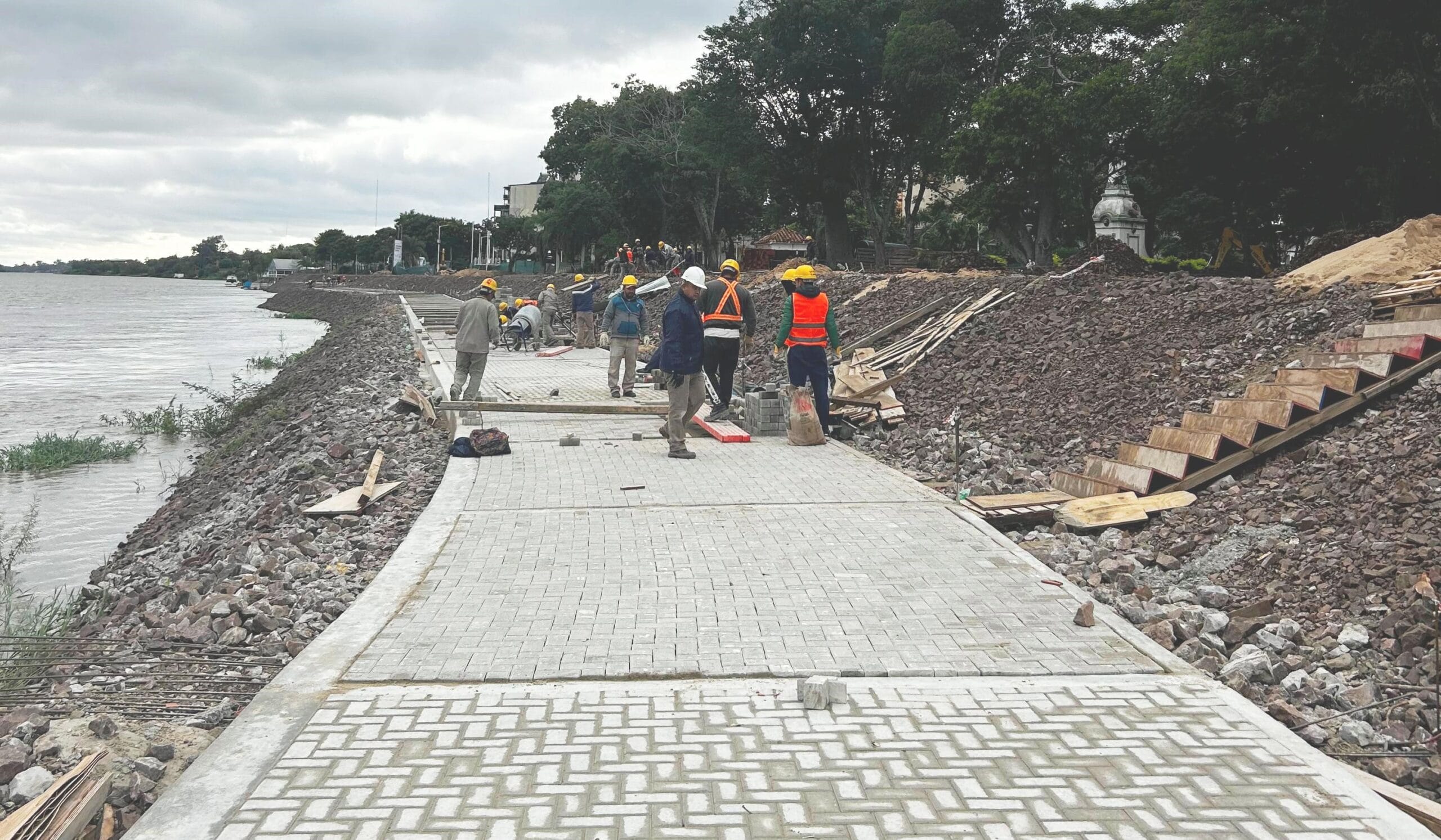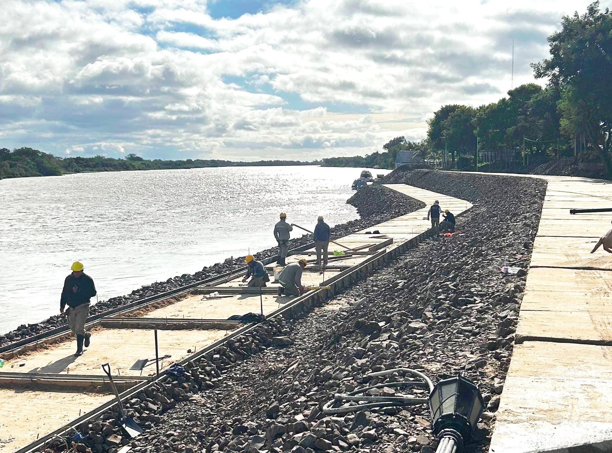 En el marco de las obras de defensas costeras definitivas de la ciudad de Goya, que lleva adelante el Gobierno de la Provincia de Corrientes, se avanza sostenidamente con recursos propios en la remodelación y puesta en valor del paseo costero y plaza Italia, incluyendo en estos trabajos un refuerzo pétreo en toda la ribera del Club Náutico ubicado en las inmediaciones.