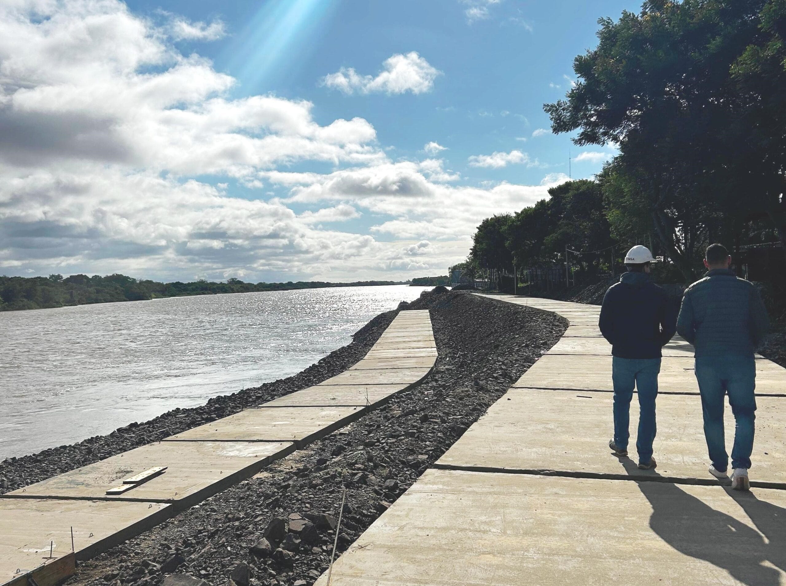 En el marco de las obras de defensas costeras definitivas de la ciudad de Goya, que lleva adelante el Gobierno de la Provincia de Corrientes, se avanza sostenidamente con recursos propios en la remodelación y puesta en valor del paseo costero y plaza Italia, incluyendo en estos trabajos un refuerzo pétreo en toda la ribera del Club Náutico ubicado en las inmediaciones.