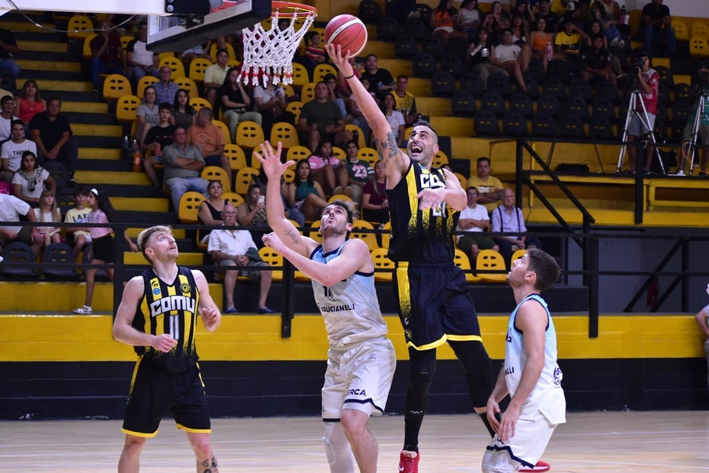 El inicio del primer cuarto tuvo un buen goleo. Pasándose bien la pelota y corriendo cuando recuperaba rápido el balón, “Comu” aprovechó la potencia de Damián Tintorelli en la pintura y el tiro externo para sacar rápidas ventajas: 15-5 en los primeros cuatro minutos.
