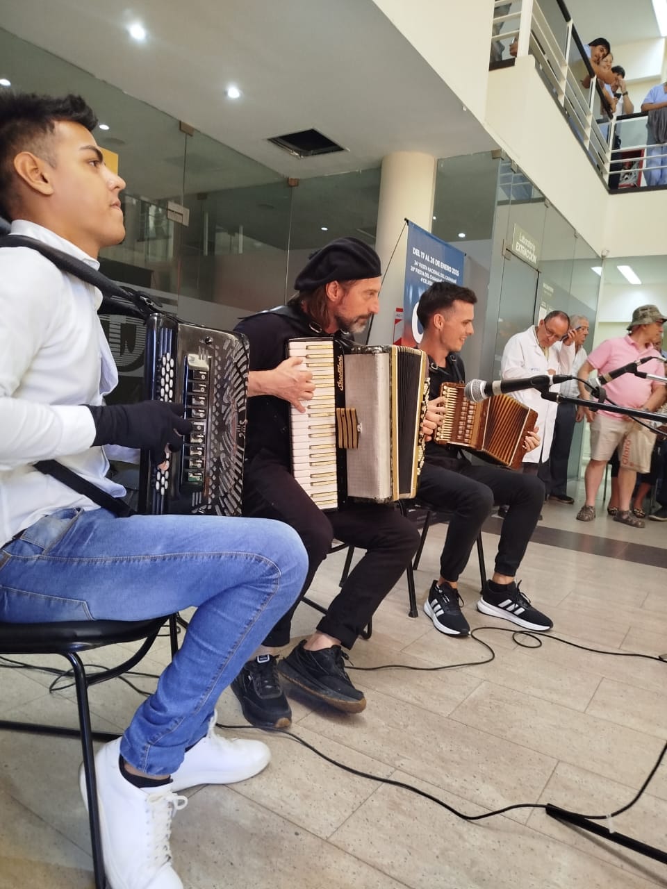 En la mañana de ayer, Spasiuk, acompañado de los jóvenes acordeonistas Emiliano López y Enzo De Martínez, hizo vibrar a los presentes con un repertorio que invitó al baile y los continuos aplausos y sapukai.