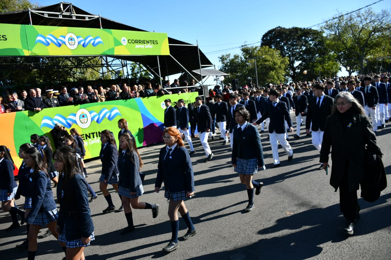 Al compás la Banda de Música de la Policía de Corrientes, también desfilaron fuerzas de seguridad, asociaciones deportivas e instituciones intermedias, ante gran marco de público, contándose con la presencia de padres, tutores y docentes, además de autoridades educativas.