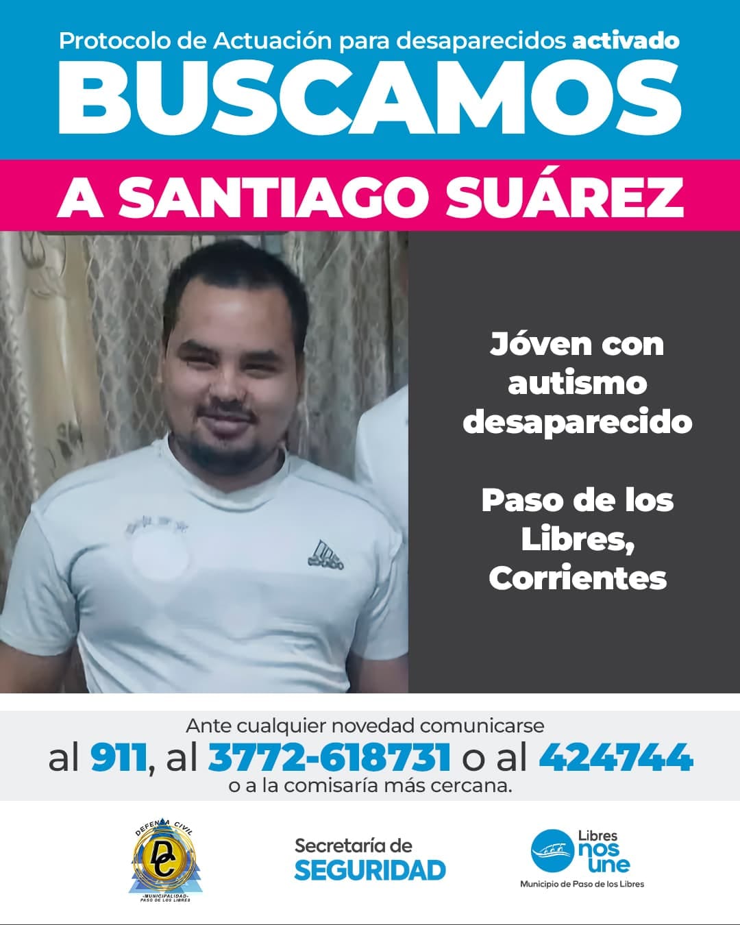 El Municipio de Paso de los Libres, a través de la Secretaría de Seguridad, mantiene activo el protocolo de actuación para la búsqueda de Santiago Suárez.