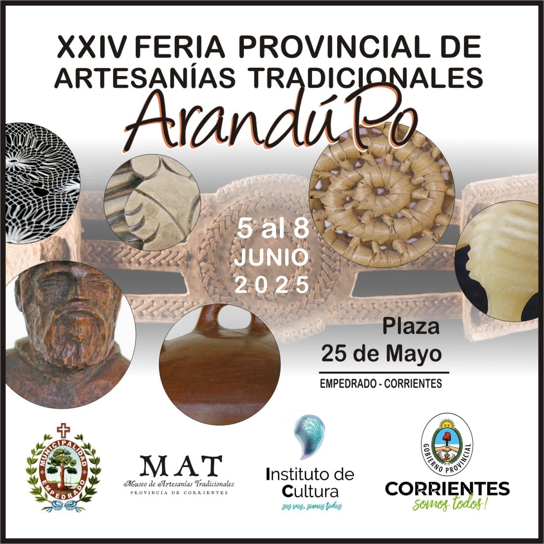 Del 5 al 8 de junio, se realizará en la plaza 25 de Mayo de la localidad de Empedrado la XXIV Feria Provincial de Artesanías Tradicionales Arandú Po (Manos Sabias). En esta oportunidad, bajo el lema “La Pasión del cuero, hecho a mano”.