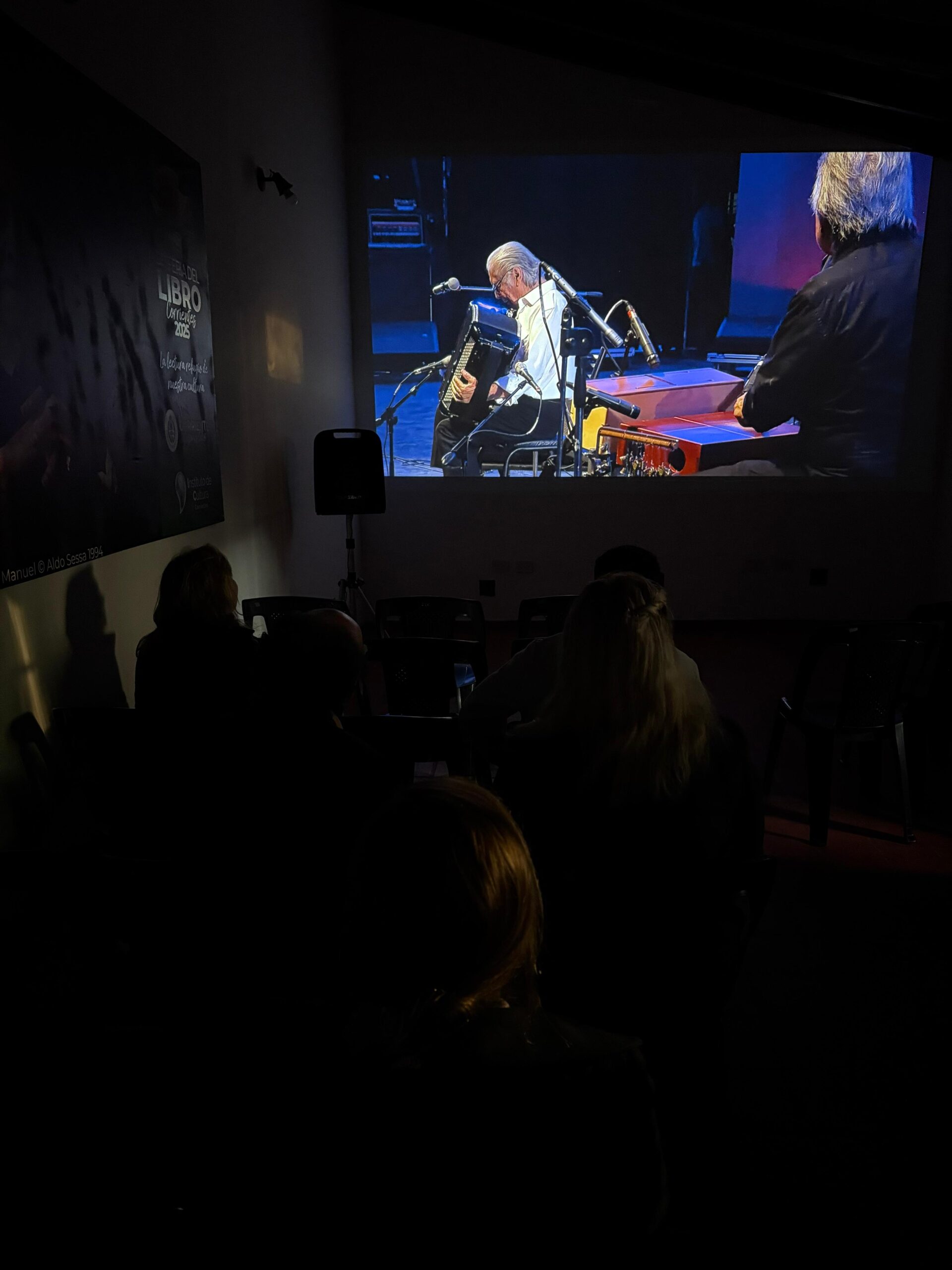 Luego de las palabras de los presentes, se procedió a la proyección de fragmentos de distintos materiales audiovisuales vinculados a la vida y obra del compositor e intérprete.