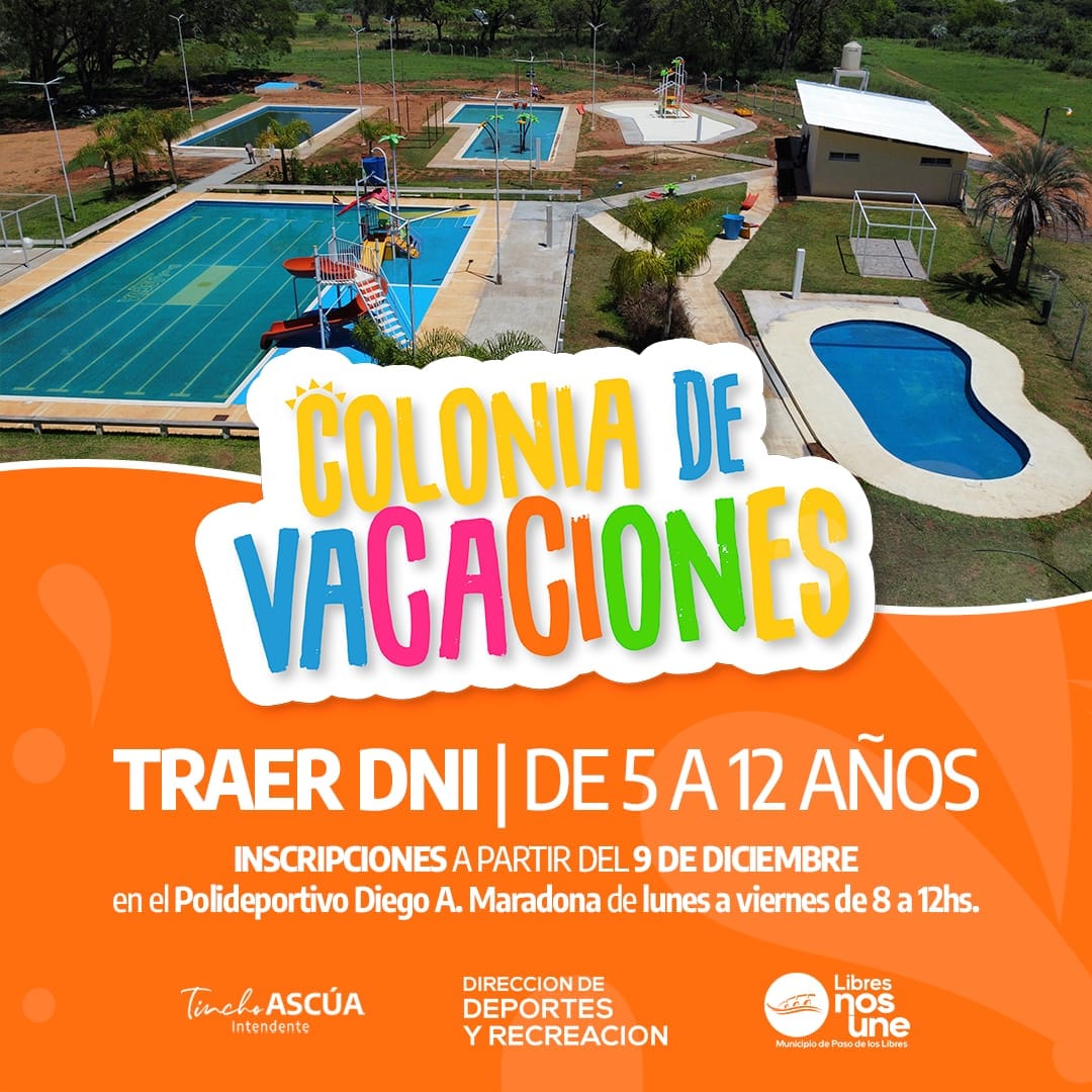 El Municipio de Paso de los Libres, a través de la Dirección de Deportes y Recreación, anunció la apertura de inscripciones para la Colonia de Vacaciones destinada a niñas y niños de entre 5 y 12 años.