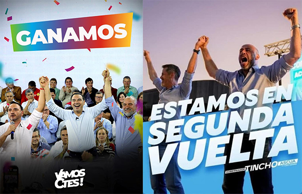 Pocos minutos después de que se cerraran los comicios en Corrientes, la alianza Vamos Corrientes se atribuyó la victoria, consagrando entonces a Juan Pablo Valdés como gobernador de la provincia. En tanto que un rato después Limpiar Corrientes asumió el segundo lugar, con su candidato Martín Ascúa, ubicándose en una presunta segunda vuelta.