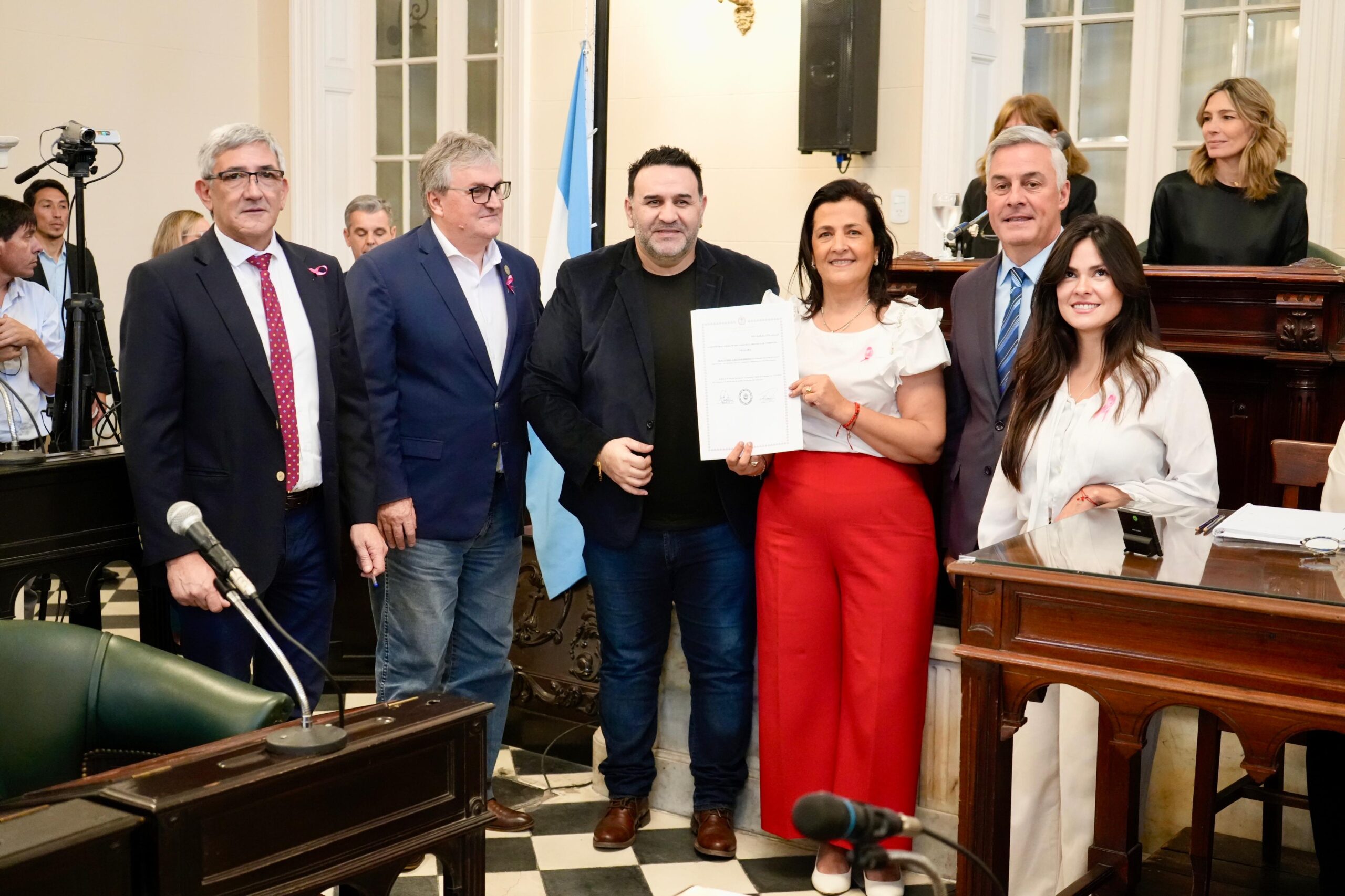 Previo a la sesión de tablas se entregó la Declaración de Interés y Reconocimiento -Declaración 231/25- al grupo musical “Los Hermanos Barrios”, en homenaje a su trayectoria.