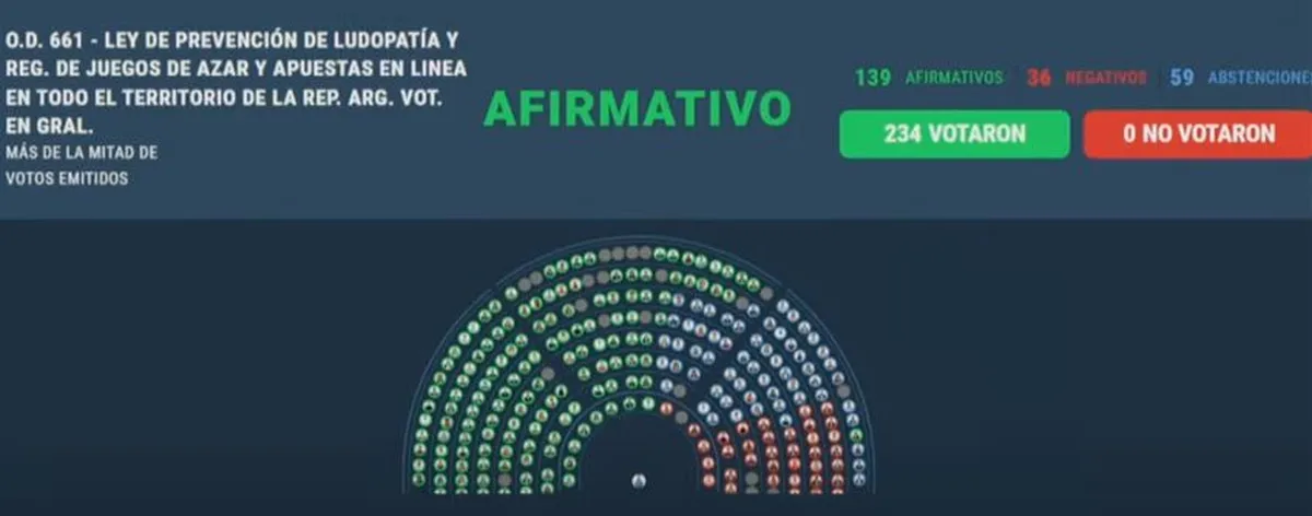 La Cámara de Diputados de la Nación aprobó ayer el Proyecto de Ley para prevenir la Ludopatía y reglamentar los juegos de azar y apuestas en línea. Iniciativa que logró la sanción favorablecon 139 votos afirmativos, 36 negativos y 59 abstenciones; y ahora pasará al tratamiento Senado.