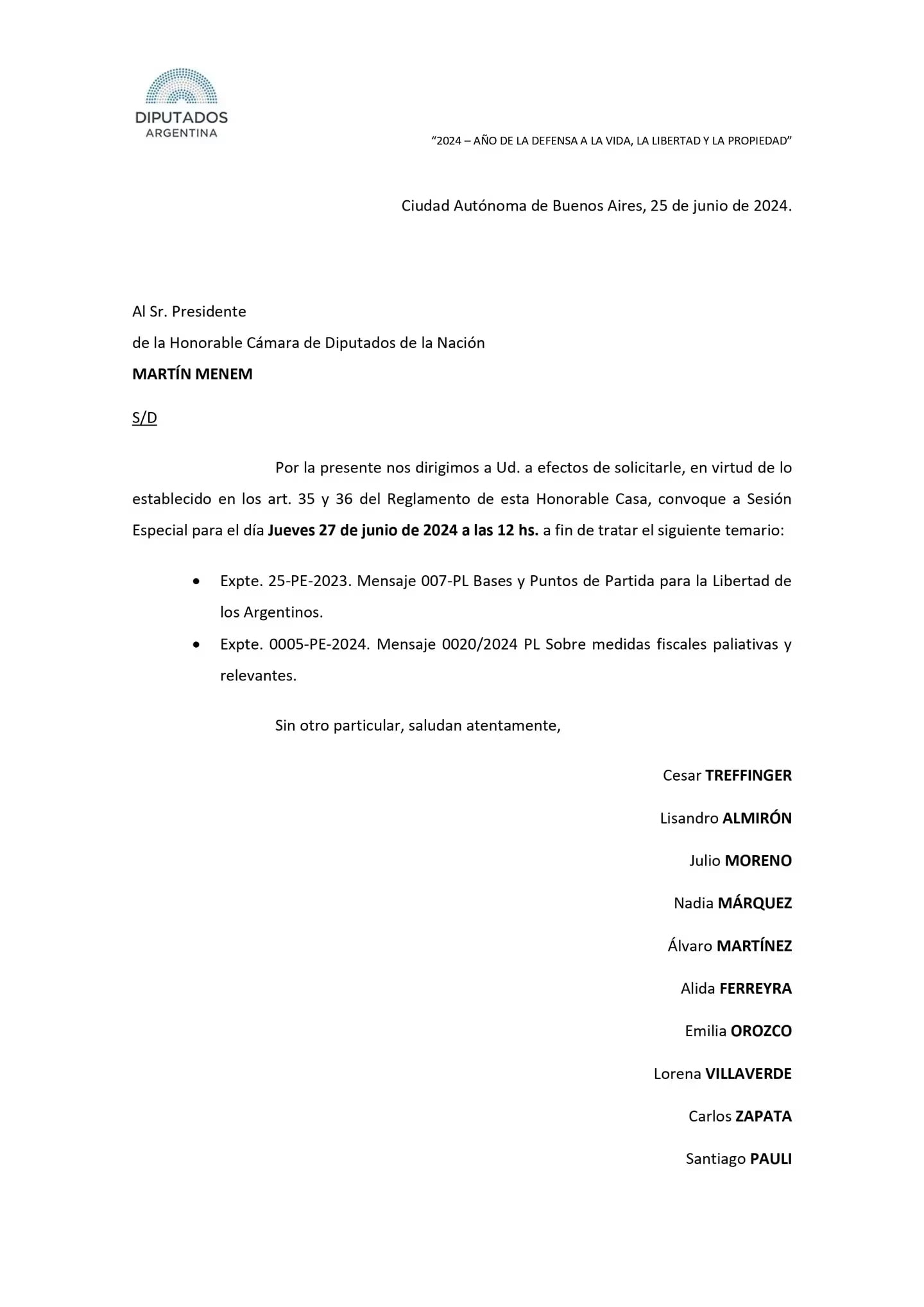No firmaron Unión por la Patria, el Frente de Izquierda y la mencionada Fein (Socialismo, Hacemos Coalición Federal). Nancy Picón Martínez (Producción y Trabajo) de San Juan, se ausentó.