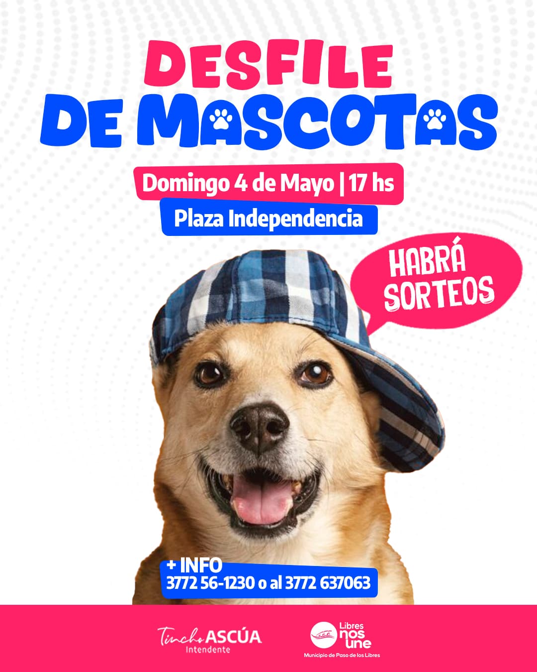Desde las Municipalidad de Paso de los Libres se invita a la comunidad a participar del Desfile de Mascotas, que se realizará el domingo 4 de mayo a las 17 horas en la plaza Independencia.