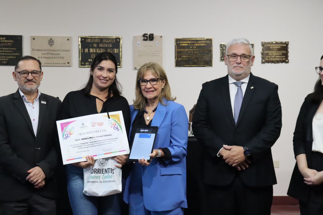 Durante el acto, tres trabajos fueron reconocidos con el Premio UNNE a través del siguiente jurado: por el Ministerio de Educación: Prof. Daira María Rodríguez Bustinduy; María Florencia Grebe y Fabián Yausaz; y por la UNNE: Hugo Wingeyer; Silvina Bechara y Natalia Trevisan.