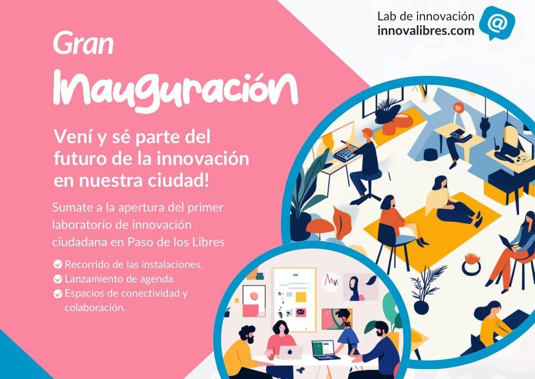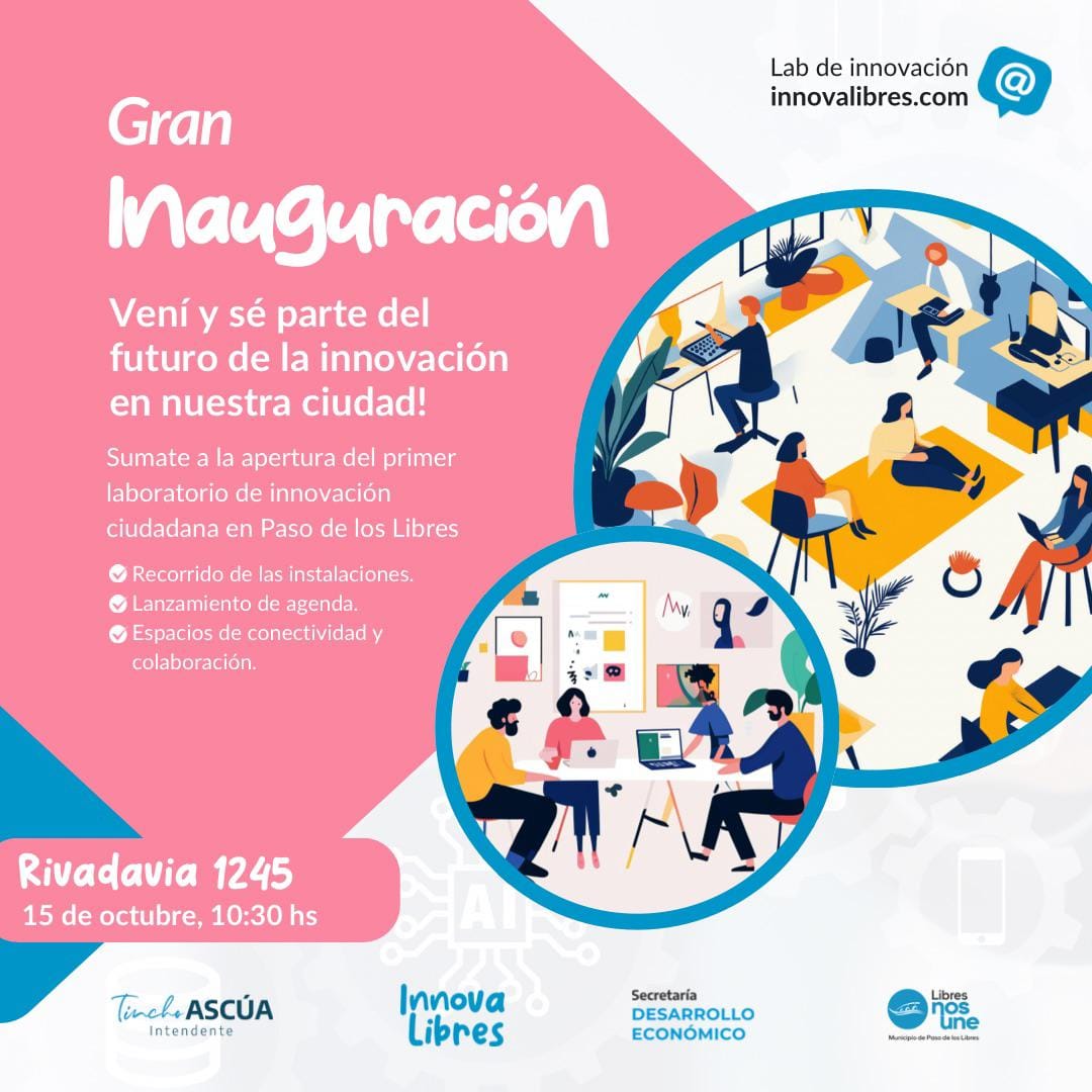 El próximo martes 15 de octubre se inaugurará en Paso de los Libres, a las 10,30 horas, “InnovaLibres”, el primer Laboratorio de Innovación Ciudadana diseñado para impulsar el bienestar económico local, fomentando el emprendimiento y la inserción laboral en oficios digitales.