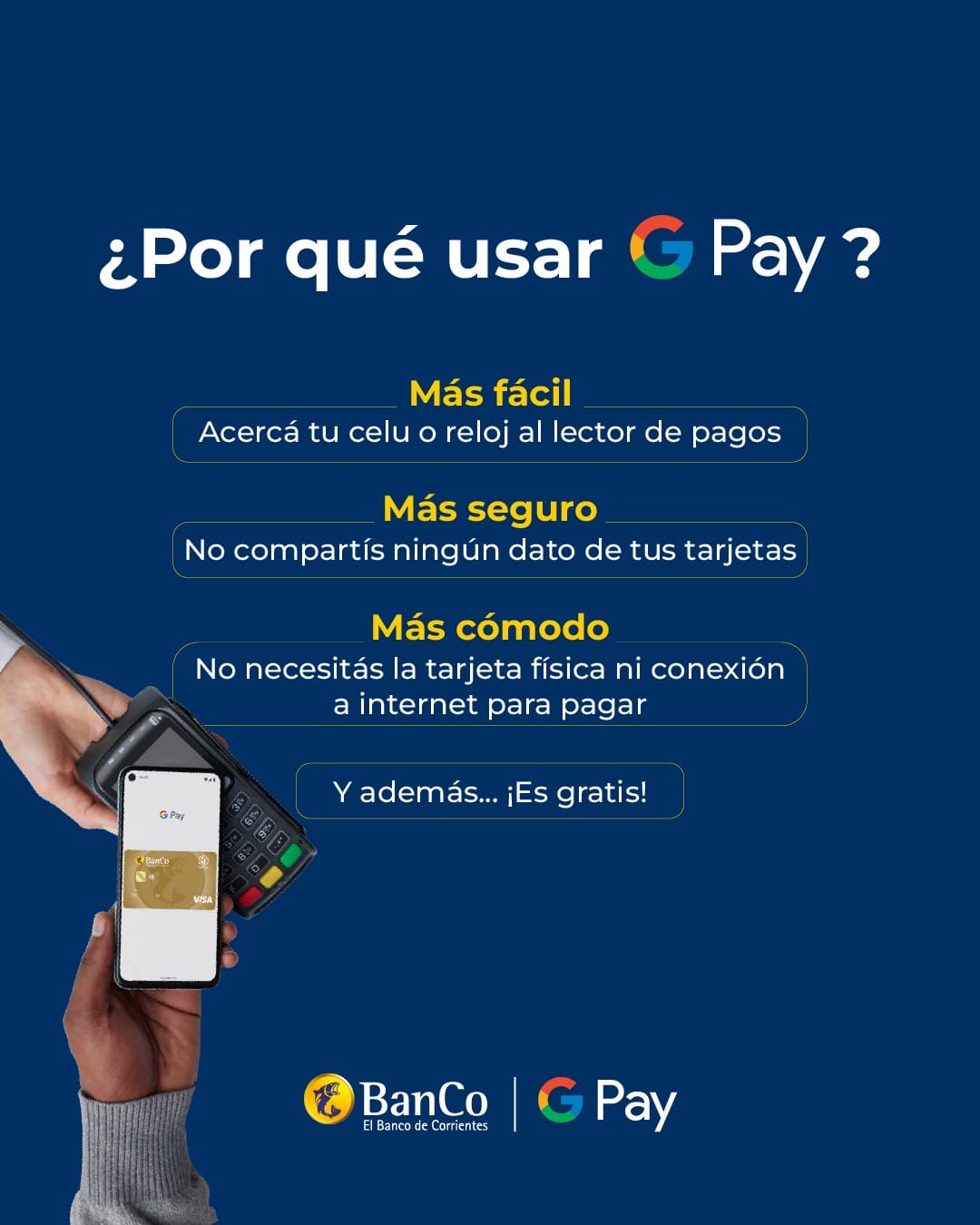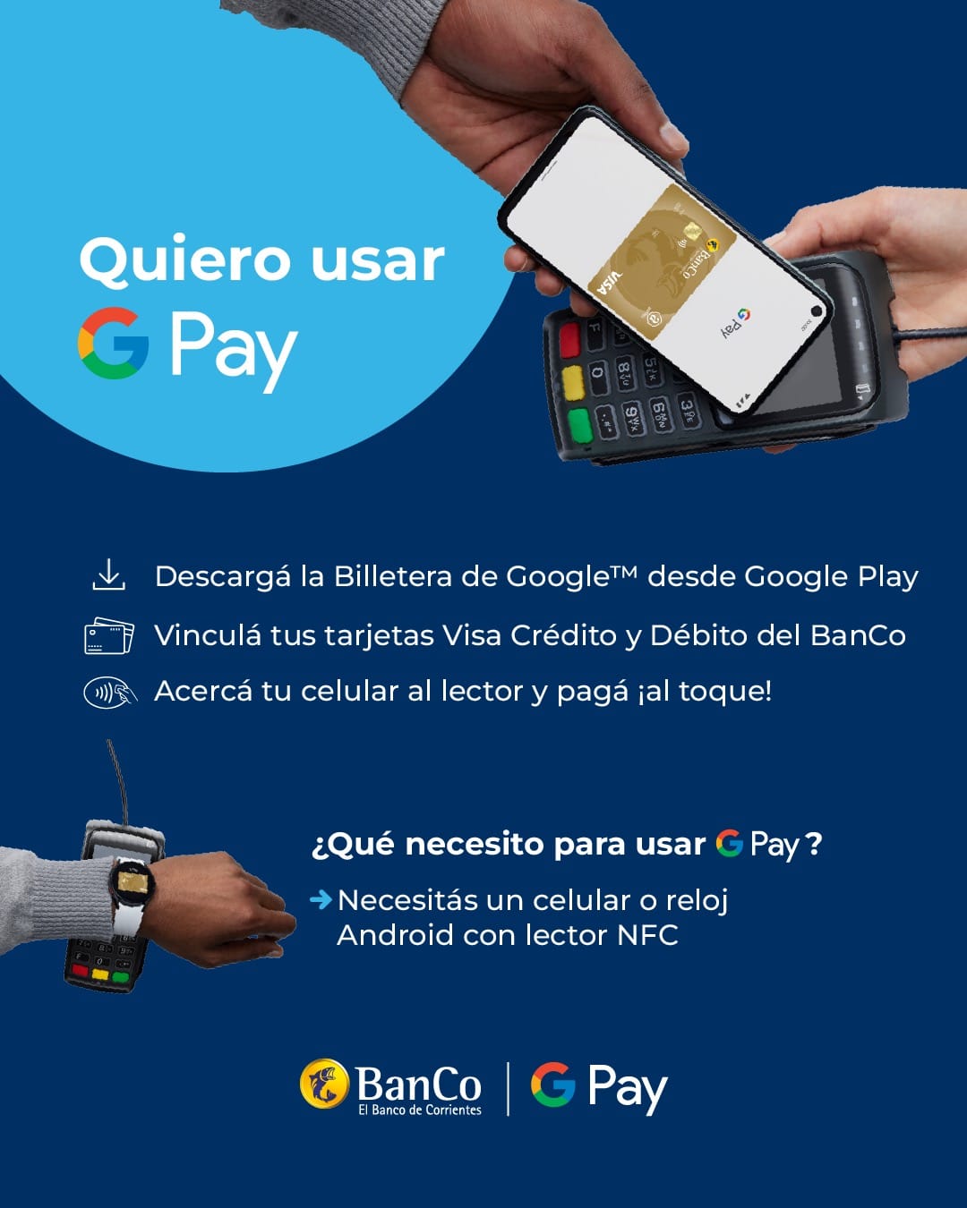 A partir de ahora, los usuarios de las tarjetas de débito y de crédito del Banco de Corrientes (BanCo) podrán guardar sus tarjetas en la billetera de Google y hacer pagos sin contacto desde MÁSBanCo en comercios donde se aceptan estas transacciones, así como también realizar compras seguras en sitios web y aplicaciones.
