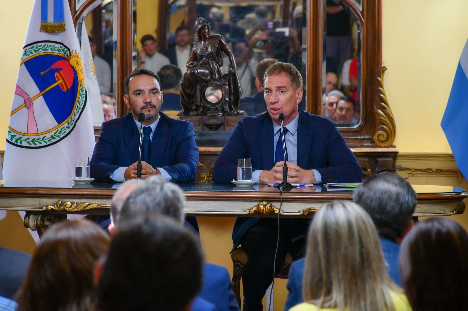 El gobernador de Corrientes, Juan Pablo Valdés, encabezó esta mañana una conferencia de prensa en el Salón Amarillo de Casa de Gobierno junto al ministro del Interior de la Nación, Diego Santilli, con quien mantuvo una reunión horas antes.