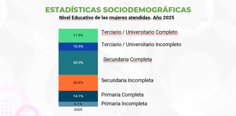 El nivel educativo de las mujeres atendidas, en su mayoría corresponde al terciario/universitario.