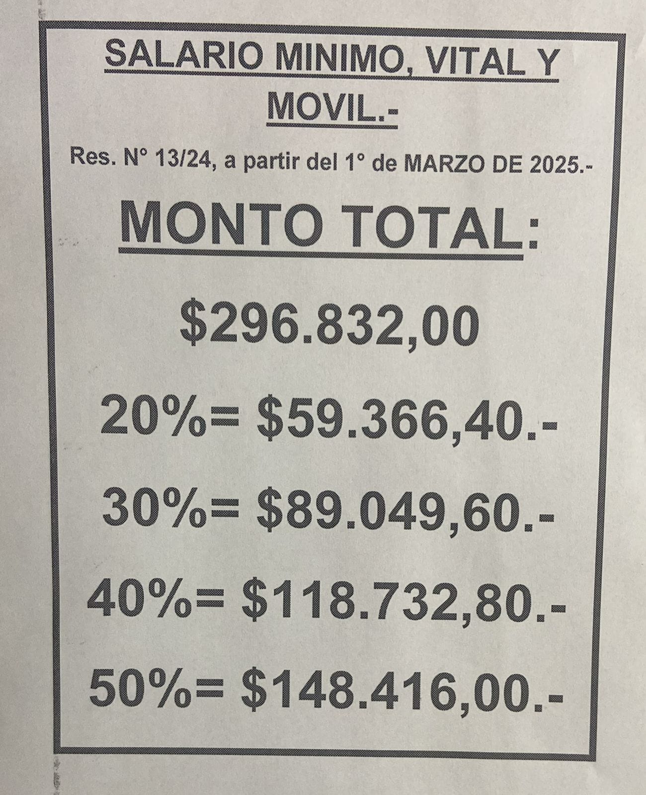 Están vigentes desde el 1 de este mes, de acuerdo al Salario Mínimo Vital y Móvil, que actualmente es de $296.832.