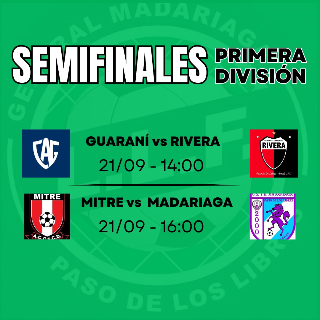 La programación de los cruces para el próximo domingo determinó que a las 14 horas se enfrentarán Guaraní y Rivera, mientras que a las 16 horas Mitre jugará frente a Madariaga.