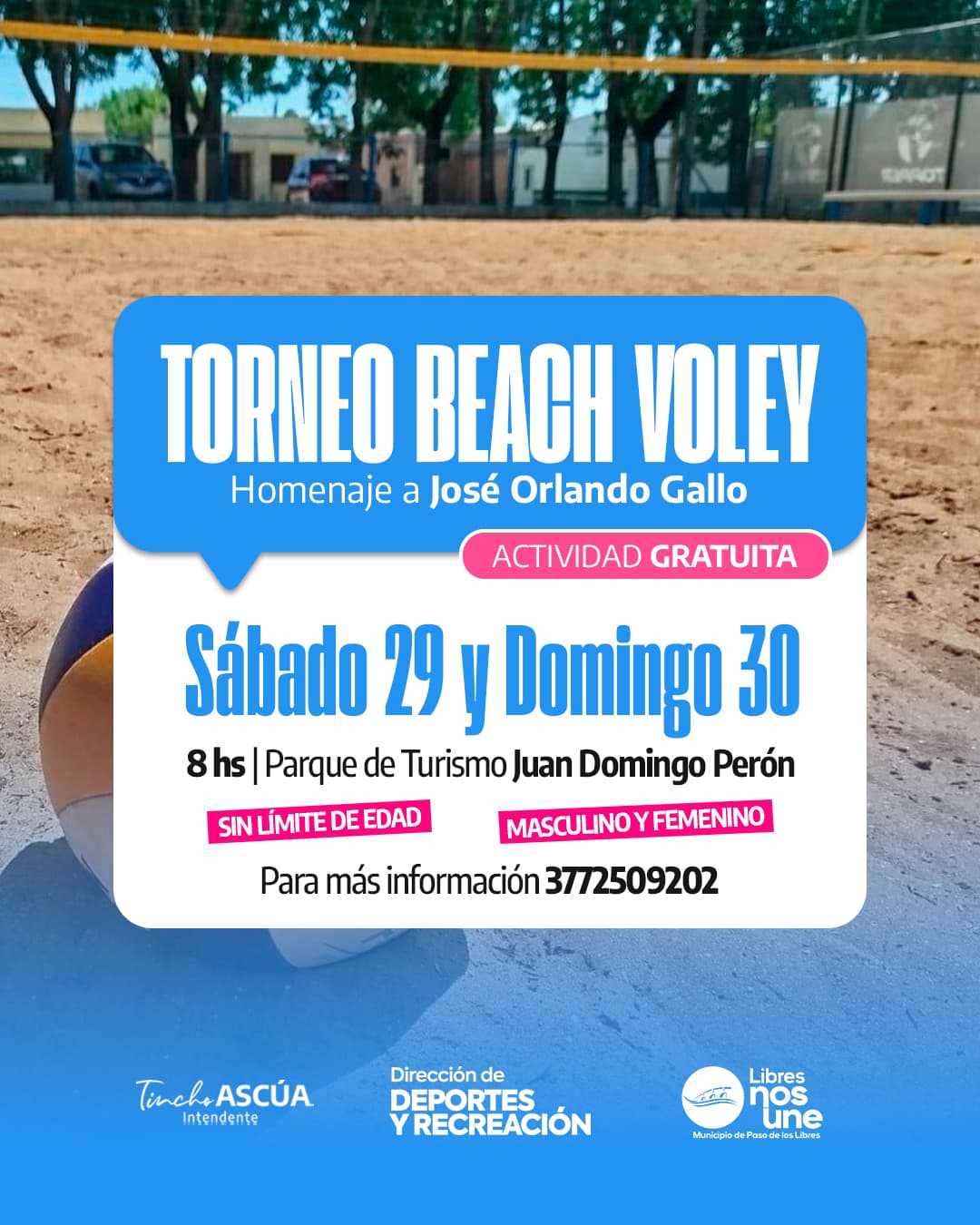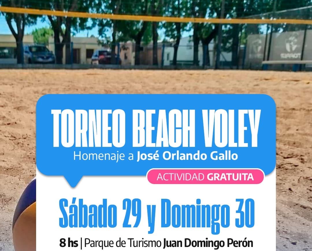 Los días sábado 29 y domingo 30 de marzo, el Parque Municipal de Turismo “Juan Domingo Perón” será sede del Torneo de Beach Vóley, una actividad recreativa y deportiva programada para homenajear a José Orlando Gallo.
