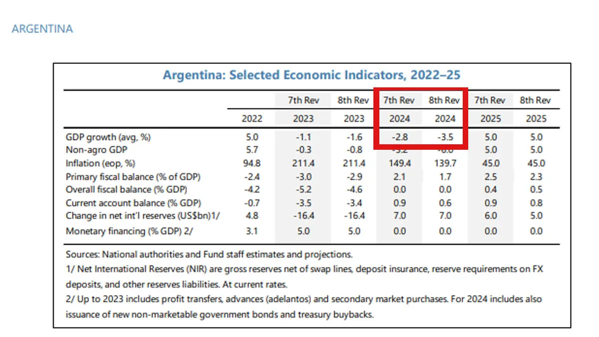 En la séptima revisión la caída del PBI en este 2024 era del 2,8% y luego de esta nueva revisión, la octava, la caída se profundiza y llegará estimada al 3,5%.