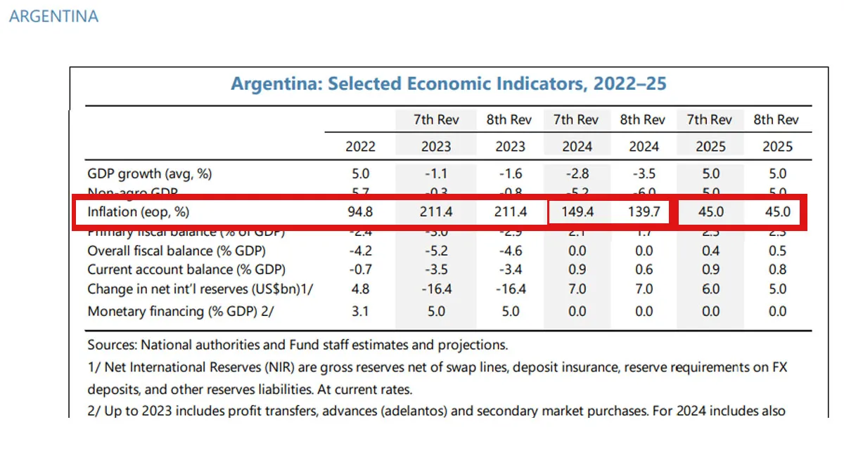 El nuevo cálculo, tras la octava revisión del plan de renegociación de la deuda, estima que la inflación en este 2024 se reducirá al 140%. Y para 2025, el cálculo llega “solo” al 49% anual.