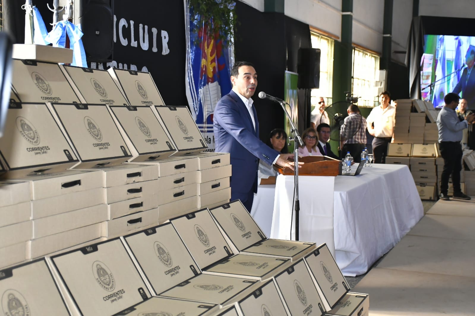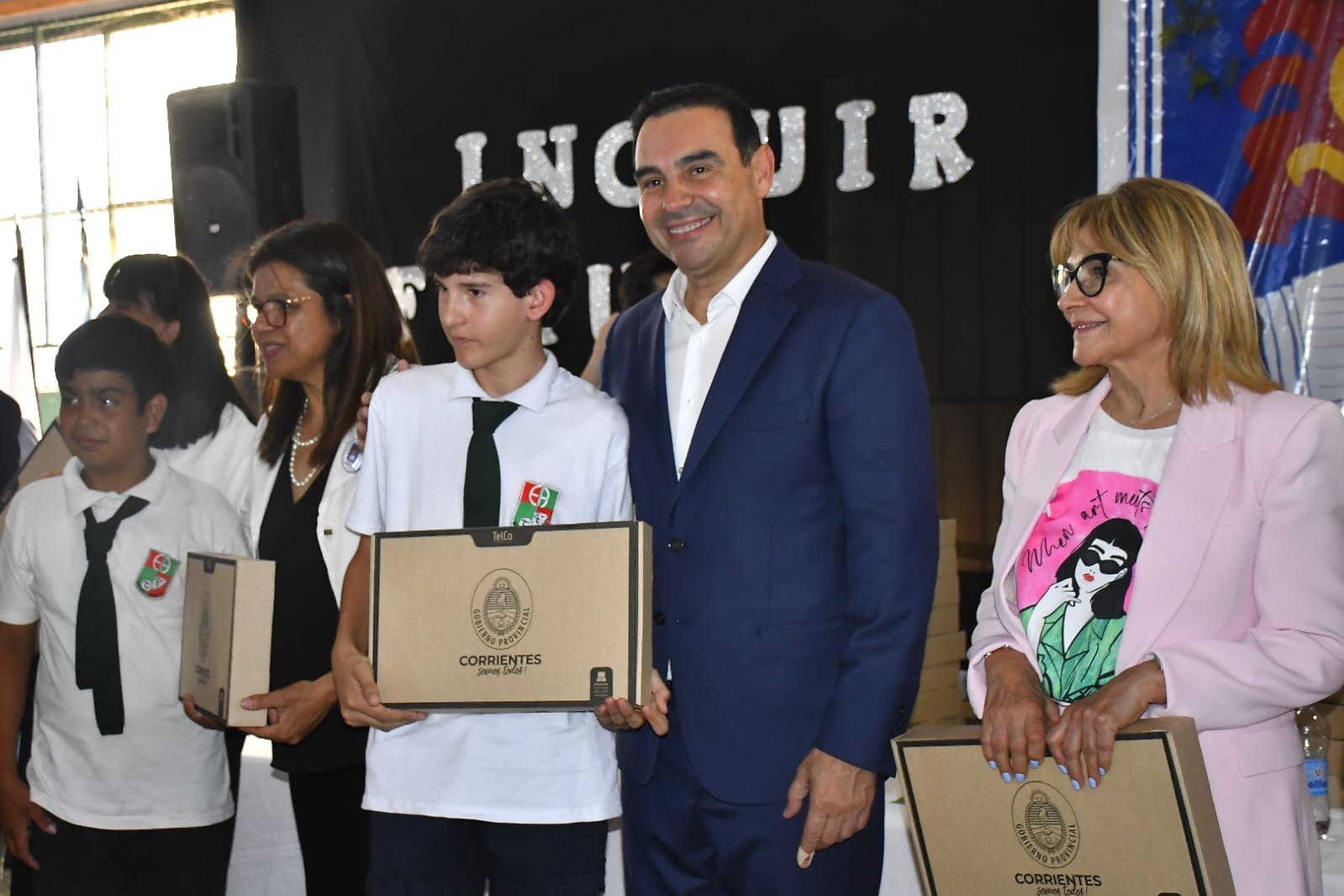 Allí, el Mandatario correntino celebró que de esta manera la ciudad se convirtió en la primera de gran población de la provincia en donde la totalidad de los alumnos cuentan con una computadora.