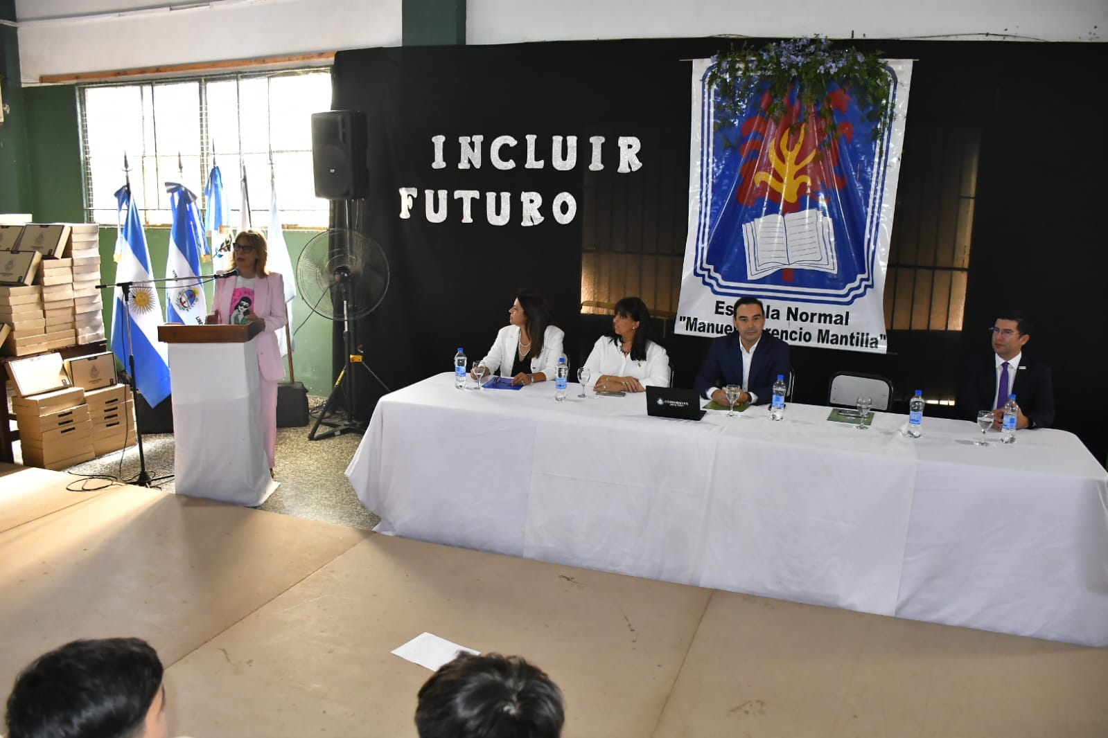 Asimismo, celebró que ahora los 1.475 alumnos del Nivel Secundario de la Escuela Normal cuentan, a través de la netbook, “con acceso a inteligencia artificial, a contenido didáctico, que es lo que estábamos buscando”.