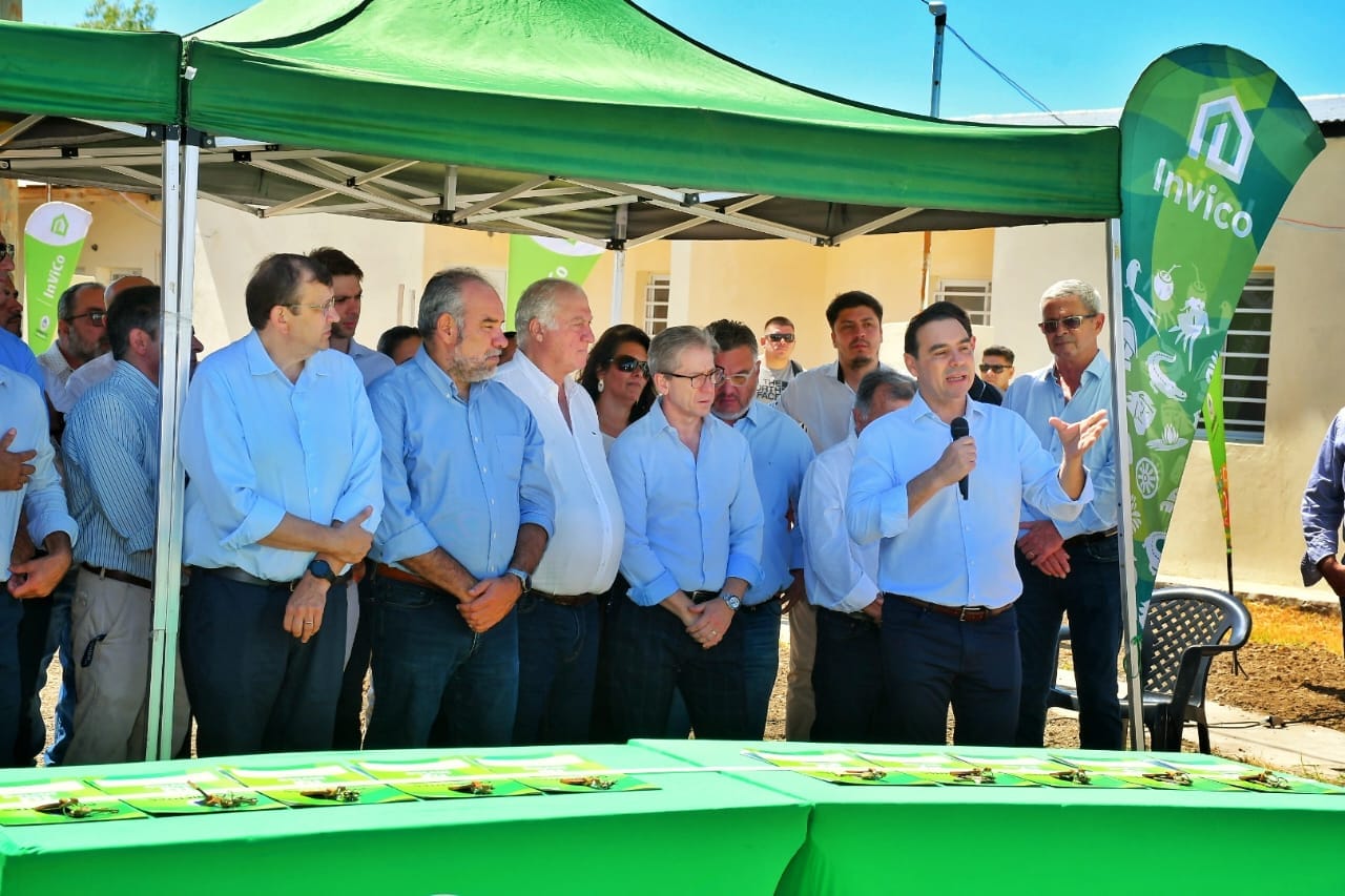Promediando el acto, el Mandatario provincial rubricó, junto al jefe comunal José Irigoyen y el interventor del INVICO, Lizardo González, un convenio para la construcción de 20 módulos habitacionales más, por un monto de 474 millones de pesos.