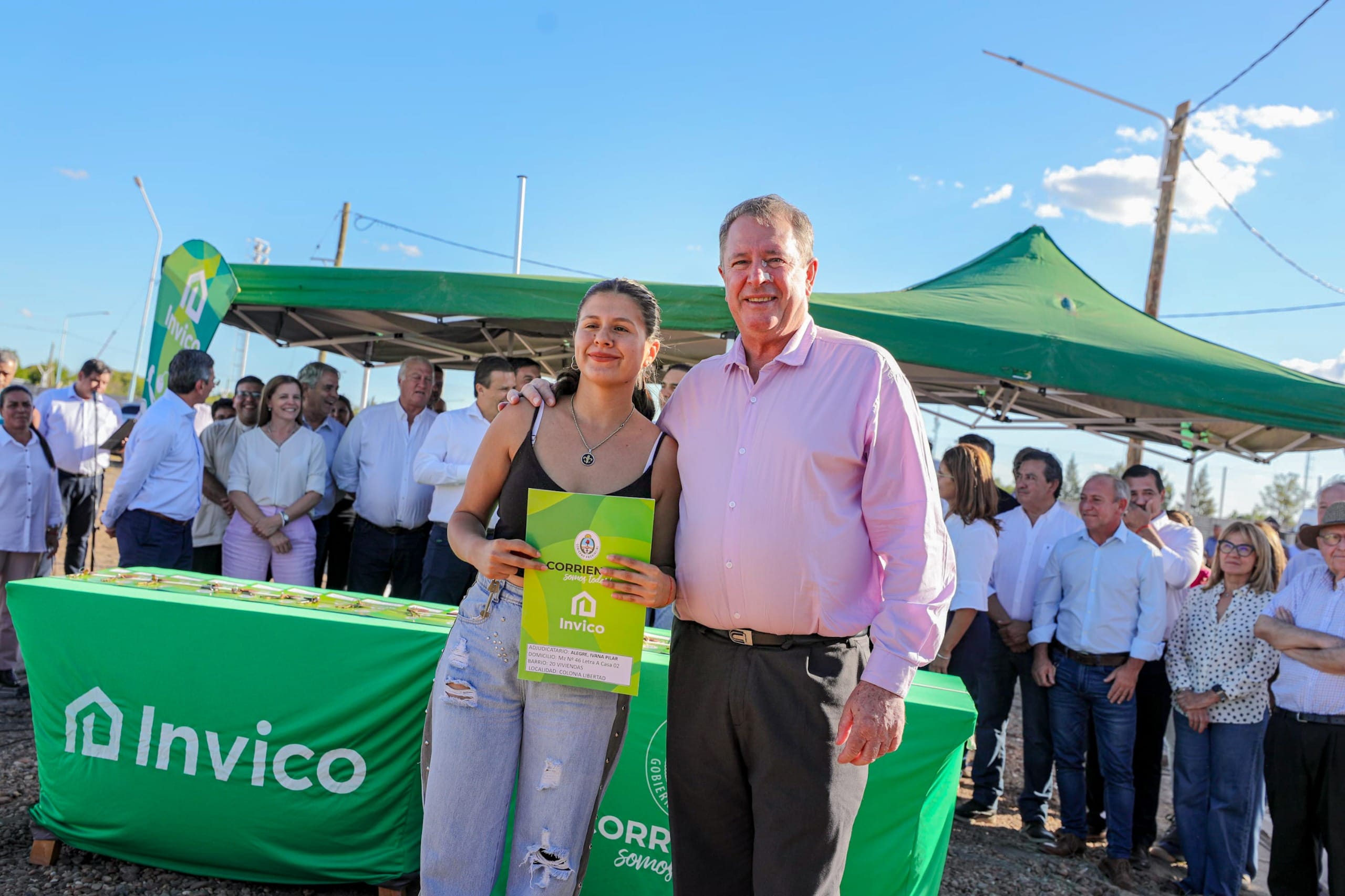 El gobernador de Corrientes, Gustavo Valdés, visitó ayer Colonia Libertad, donde entregó, en primer lugar, 20 viviendas y anunció la construcción de 15 más a través del Programa de Demanda Libre del Instituto de Vivienda de Corrientes (INVICO), tras remarcar que “la inversión que hicimos en la localidad respecto a obras es realmente importante”.