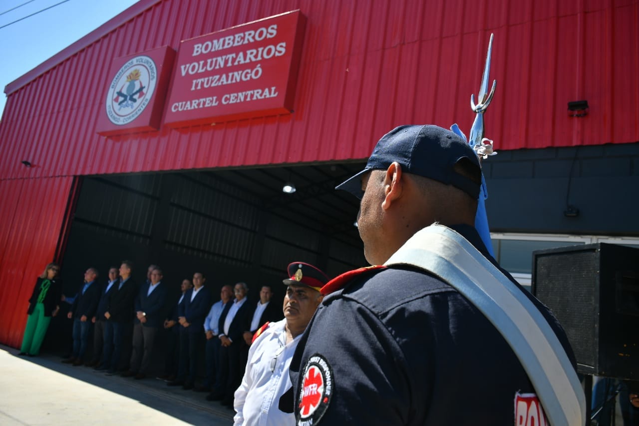 Culminando con su estadía en Ituzaingó, el gobernador Gustavo Valdés inauguró hoy el nuevo edificio del Cuartel Central de Bomberos Voluntarios.