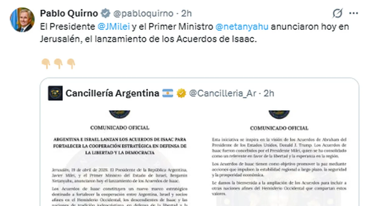 La confirmación llegó de la mano del canciller Pablo Quirno, quien detalló los alcances de los acuerdos alcanzados entre el presidente Javier Milei y el primer ministro Benjamín Netanyahu.
