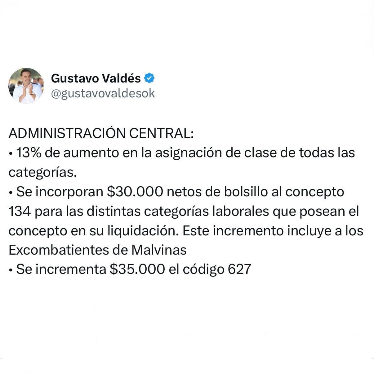 Con estas medidas, la gestión de Valdés vuelca en la política salarial una inversión anual de $128.600 millones.