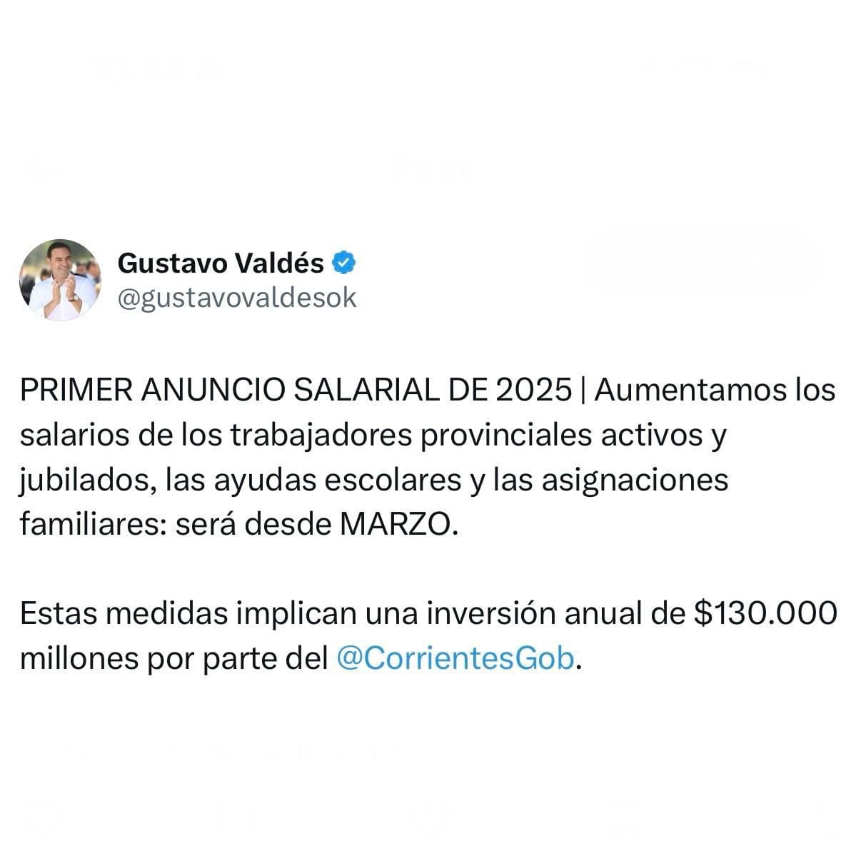 A lo que acotó que “por decisión del gobernador Gustavo Valdés seguimos con la política de recomposición salarial por encima de los índices inflacionarios.