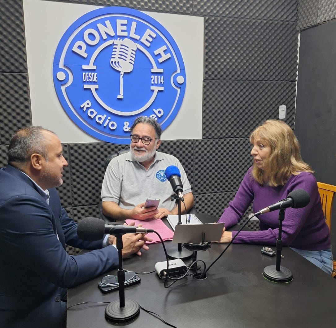 Concluidas las actividades, Bentos y Espinoza fueron entrevistados en PONELE H Radio, oportunidad en la que explicaron el estado en que se encuentran las obras en el Parque Industrial y en el aeropuerto.