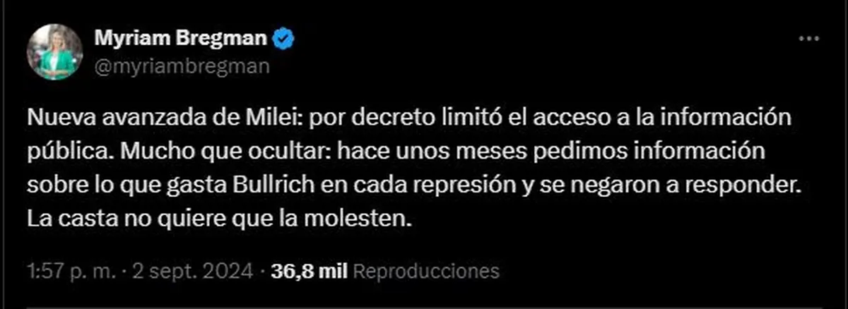 Con la firma del presidente Javier Milei y el jefe de Gabinete, Guillermo Francos, el decreto 780/2024 establece que es “imprescindible” clarificar el alcance del concepto de “información pública”, que comprende “cuestiones de interés público ligadas a la actividad estatal y su control, y excluye por su propia naturaleza a la información que hace al ámbito privado del funcionario o magistrado, especialmente cuando la solicitud pretende ingresar a una esfera típicamente doméstica”.