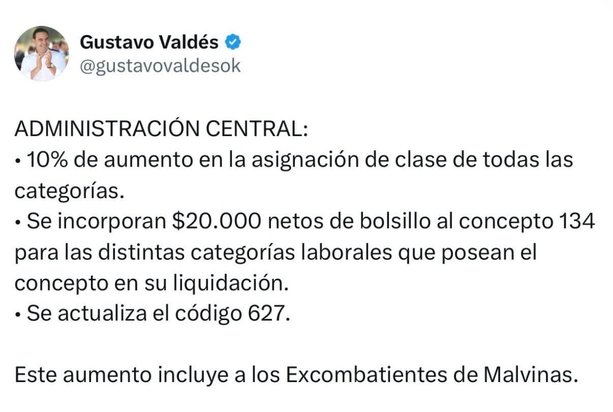 La gestión del gobernador Gustavo Valdés oficializó hoy la sexta recomposición de sueldos a partir de este mes, la que beneficia a los agentes -activos, jubilados y pensionados- de la Administración Pública provincial de Corrientes.