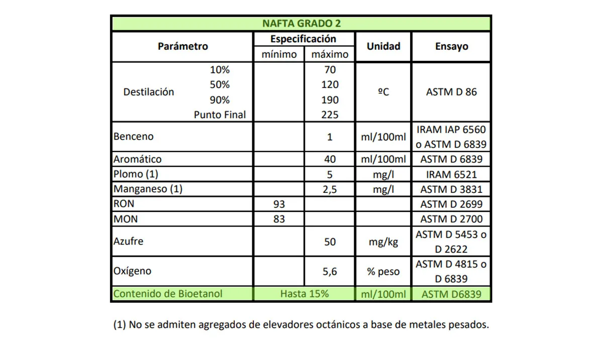 La adecuación técnica responde a que el contenido de oxígeno de las naftas está directamente vinculado con el porcentaje de bioetanol incorporado. Por eso, para habilitar mezclas superiores de bioetanol sin afectar las especificaciones de calidad, resultaba necesario actualizar ese parámetro.
