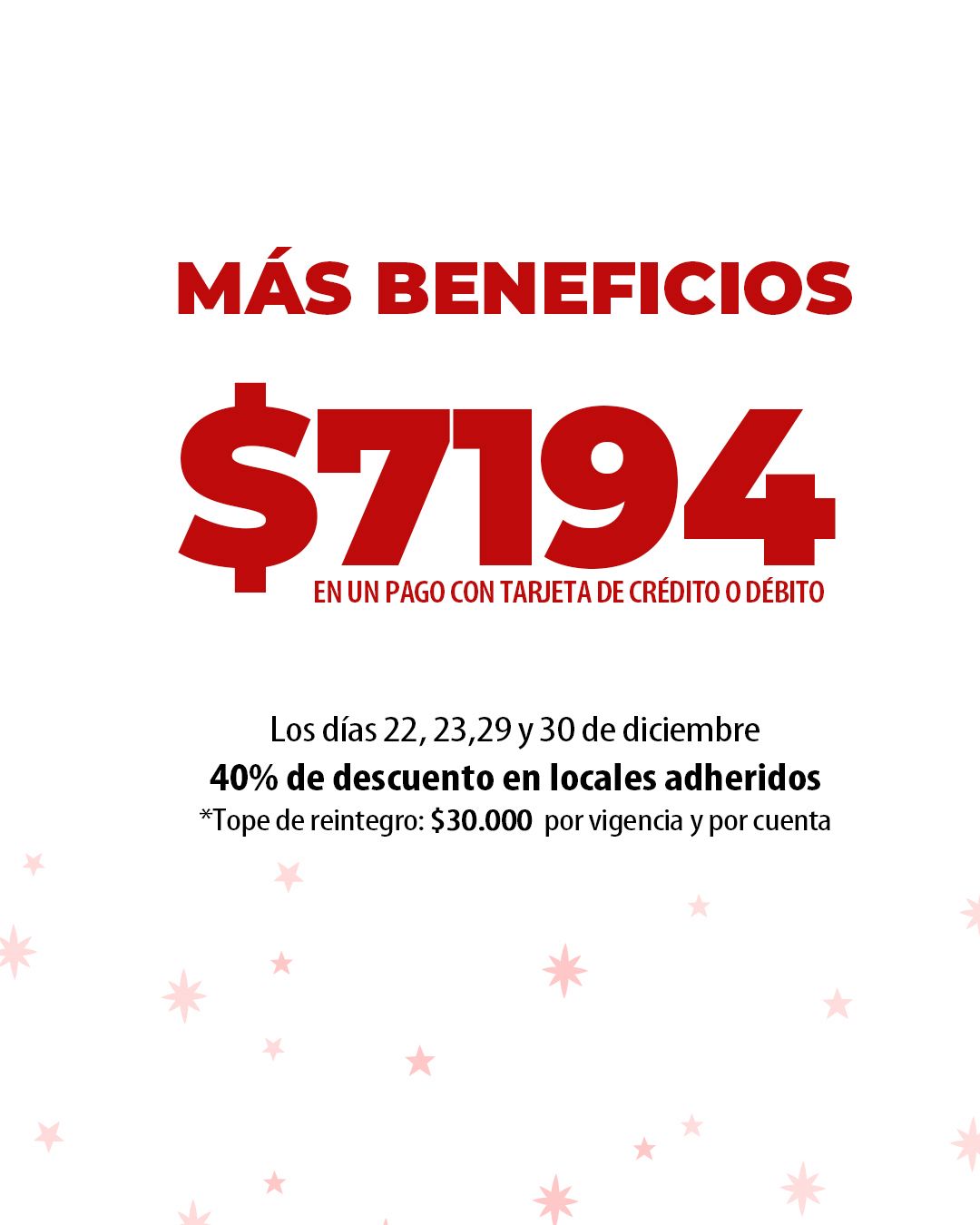 “Costará $7.194 y, para facilitar el acceso a la misma. El banco dispondrá de promociones que incluyen hasta un 40% de descuento en un solo pago. Otra de las promociones es el Especial Fiestas, habilitada para los días 19, 20 y 21 de diciembre; y 3 y 4 de enero.