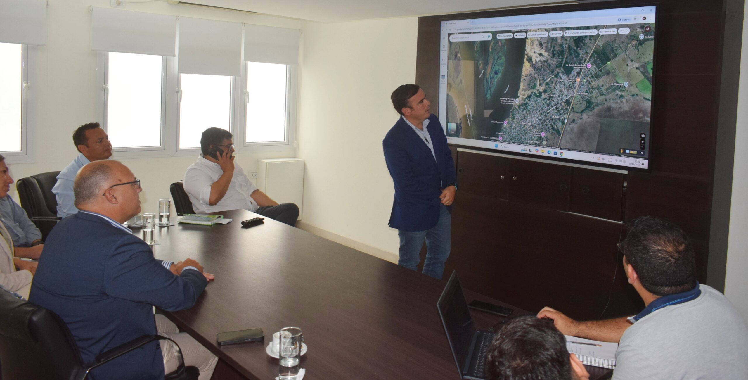 El encuentro se realizó este lunes en la Sala de Situación del Ministerio de Obras y Servicios Públicos (MOSP) y contó con la participación de los subsecretarios de Obras Públicas, Antonio Portel, y de Coordinación de Entes Descentralizados, Miguel Arismendi; además de técnicos de la Cartera.