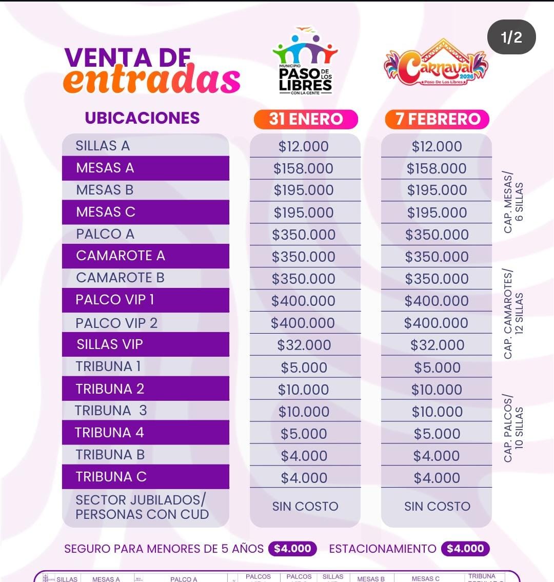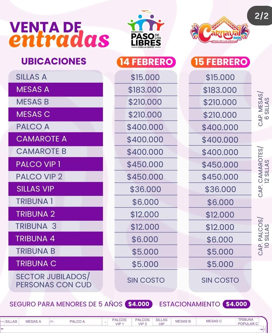 “En la página ‘Carnaval Paso de los Libres’ está el planito con los sectores, valores y capacidades”, explicó Cardozo.