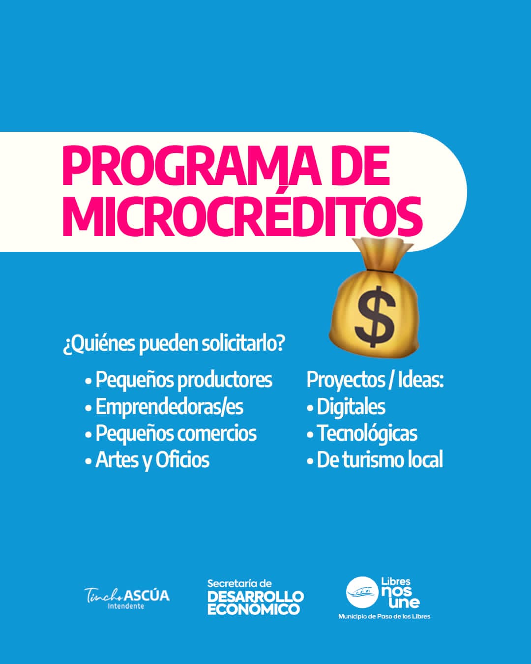 El Municipio de Paso de los Libres, a través de la Secretaría de Desarrollo Económico, continúa impulsando el Programa de Microcréditos destinado a fortalecer emprendimientos locales.