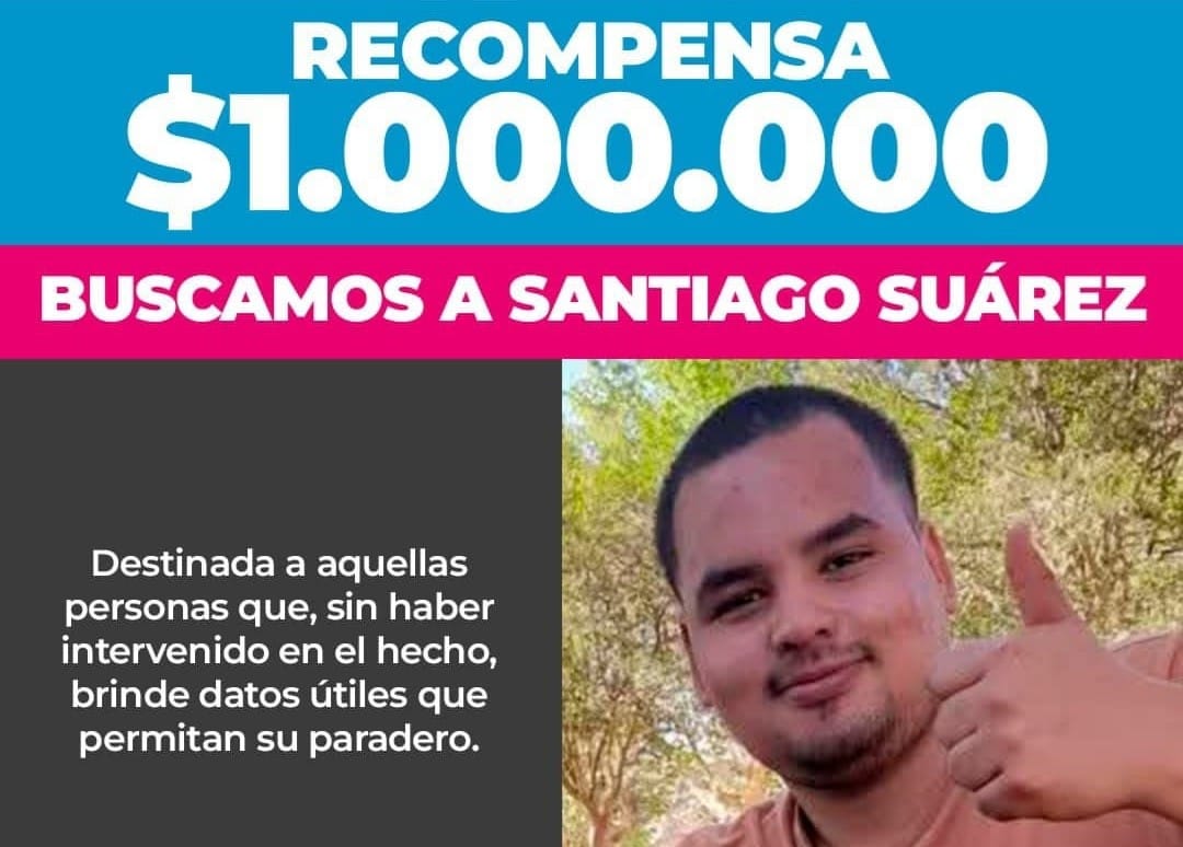 La suma es de $1.000.000. La intención es obtener información que ayuden a determinar el paradero del joven Diego Santiago Suárez, de quien no se sabe nada desde el 15 de diciembre pasado.