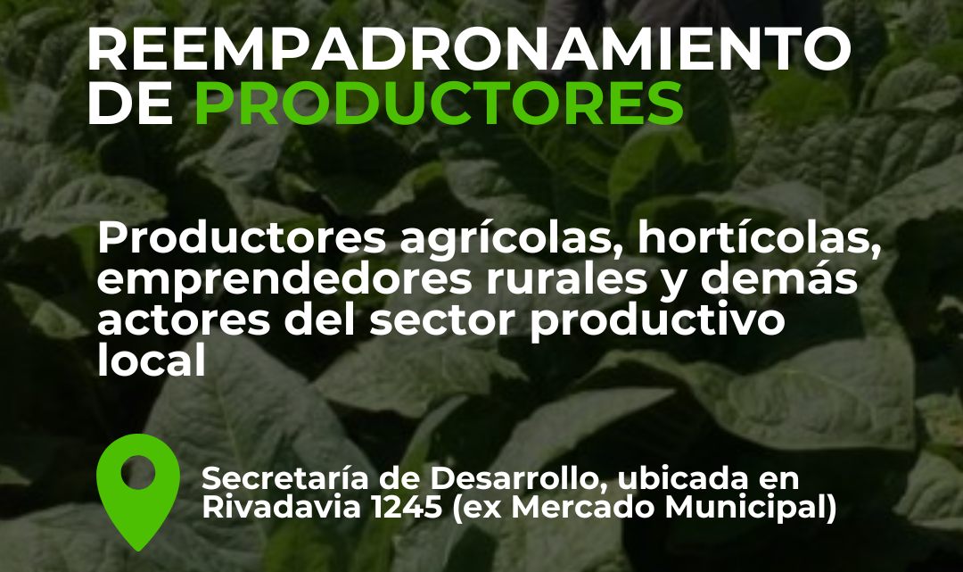 El reempadronamiento está dirigido a productores agrícolas, hortícolas, emprendedores rurales y demás actores del sector productivo local. Los interesados deberán presentarse para la actualización de sus datos.