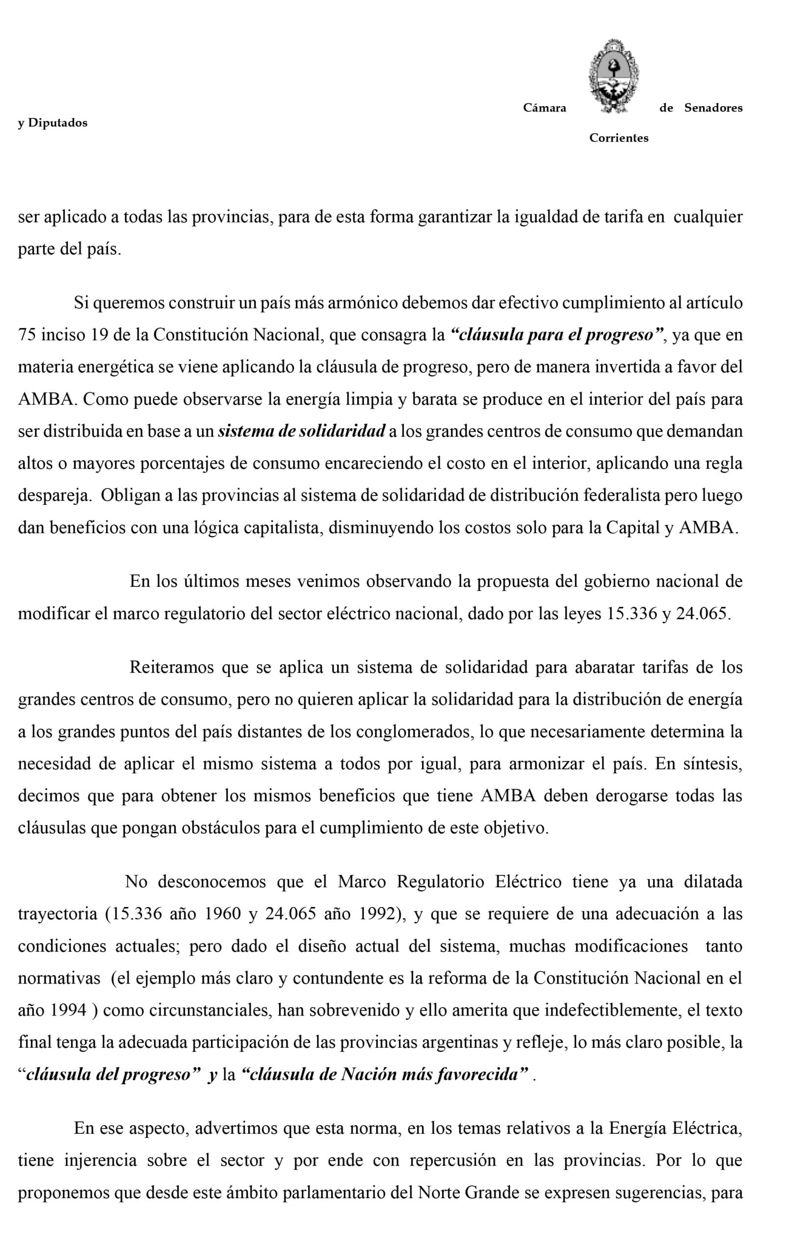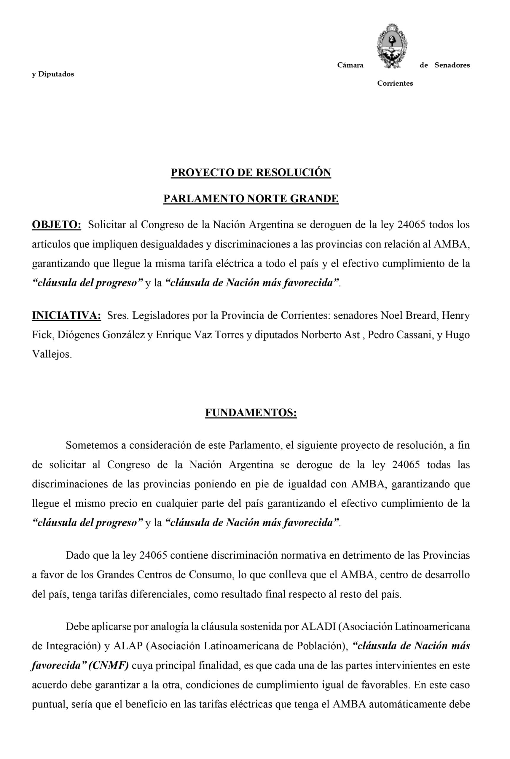 Coordinando la Presidencia de Economía, Planificación e inversión, se aprobó el dictamen para tratar hoy, en el Plenario de las 10 provincias del Parlamento del Norte Grande, el proyecto presentado por los correntinos sobre modificación en el Congreso de la Nación de la Ley N°24.065 (Ley CAMMESA).